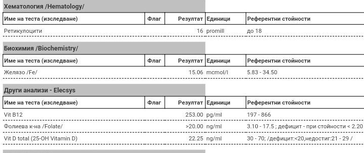 За него всичко влизащо в референтните граници е добре.  Извън референтните пак е добре... Например вит. Д 16.5 въобще не му направи впечатление.