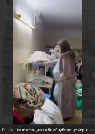 Бременни жени в бомбоубежище в Херсон- пак от видео, на единия кадър махат