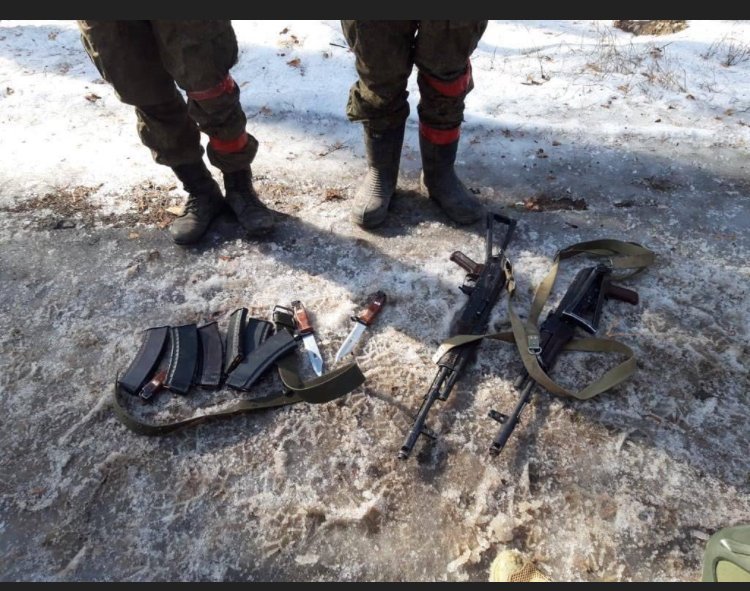 Интересна снимка на въоръжението на двама пленени руснаци.