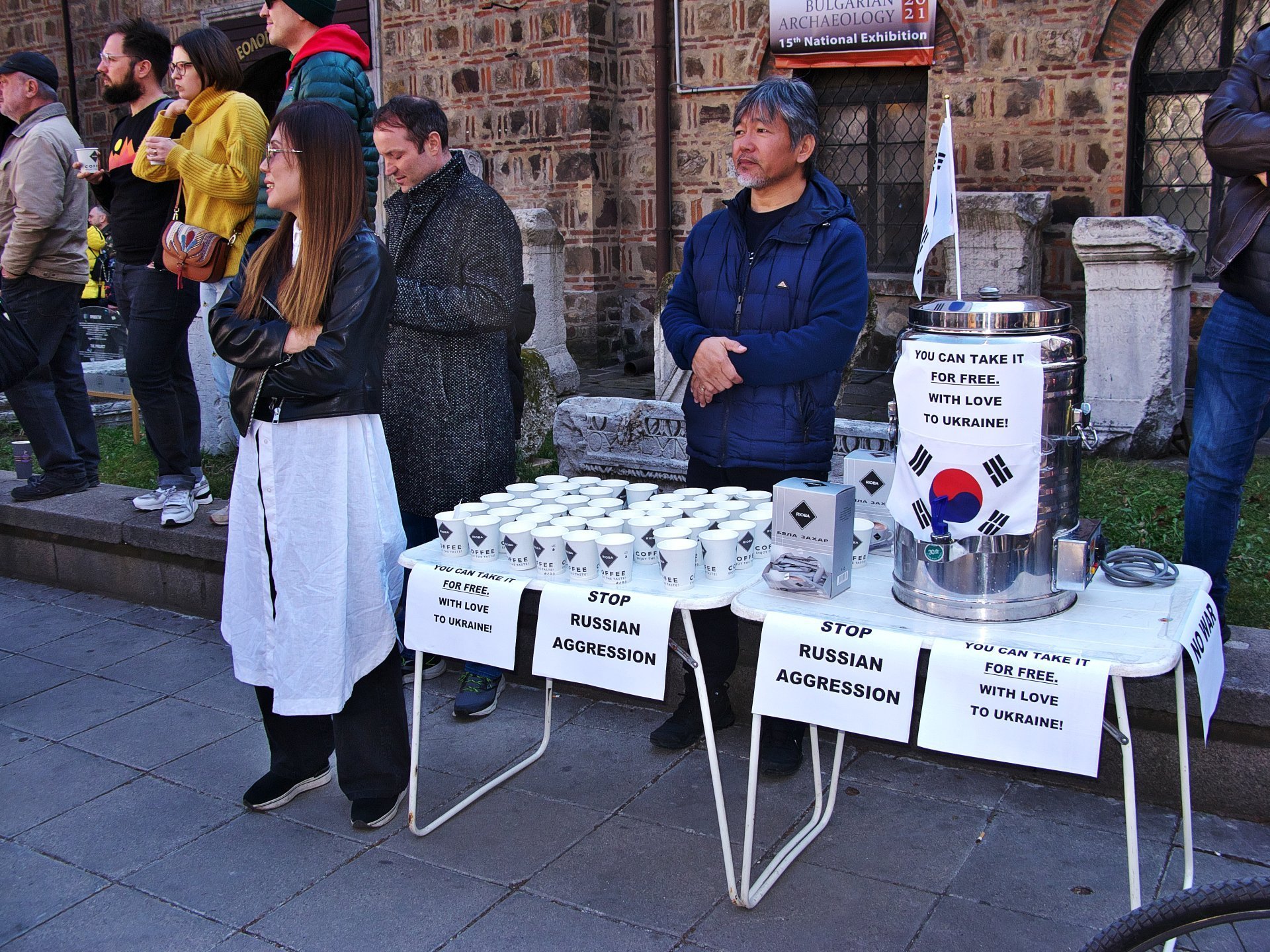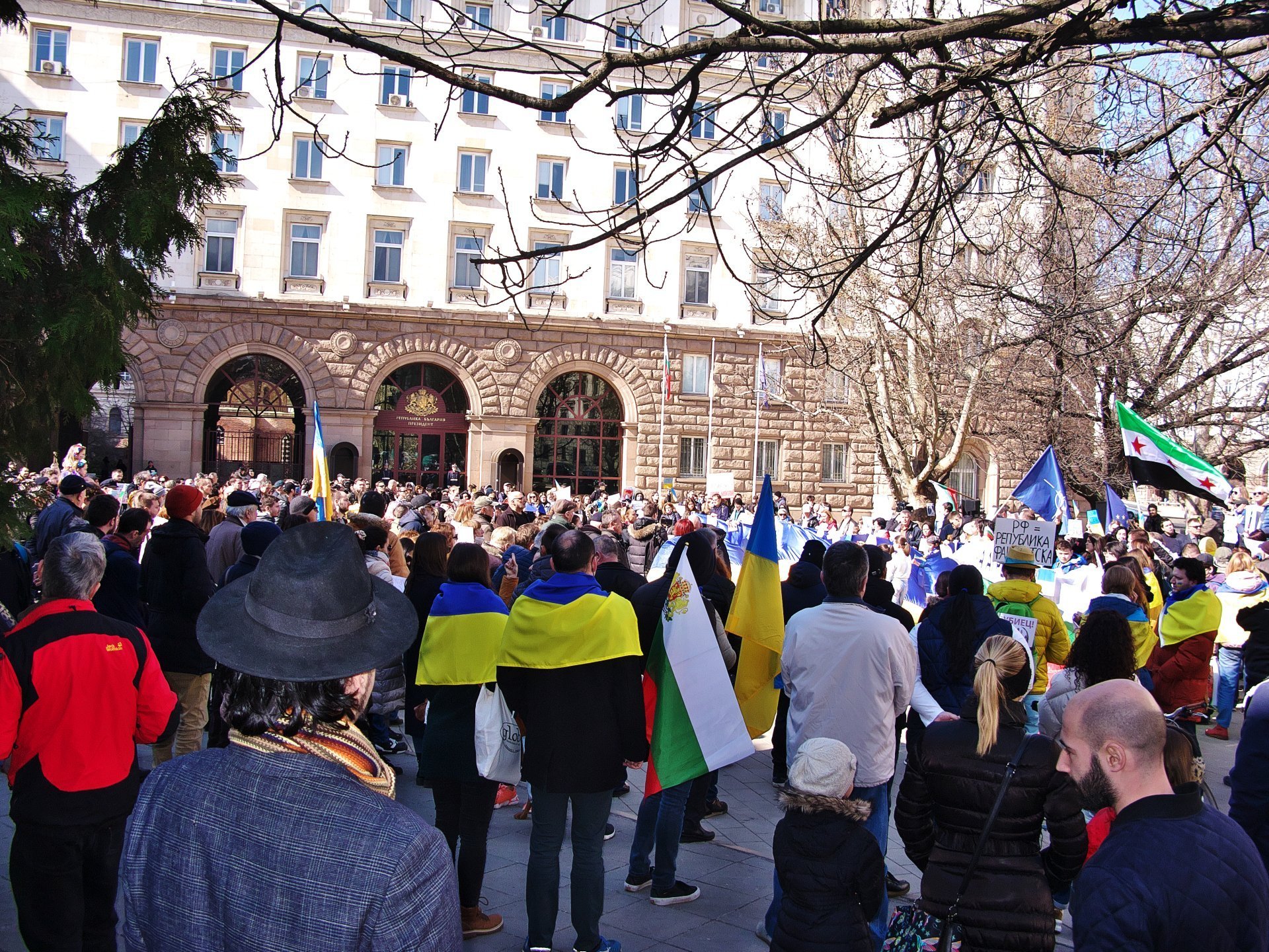 Имаше митинг в подкрепа на Украйна пред Президентството. Казаха, че има група /предполагам във FB/, която организира помощ за майки с деца бягащи от войната. Дойде някакъв провокатор по едно време да крещи нещо, но полиците го прибраха набързо.