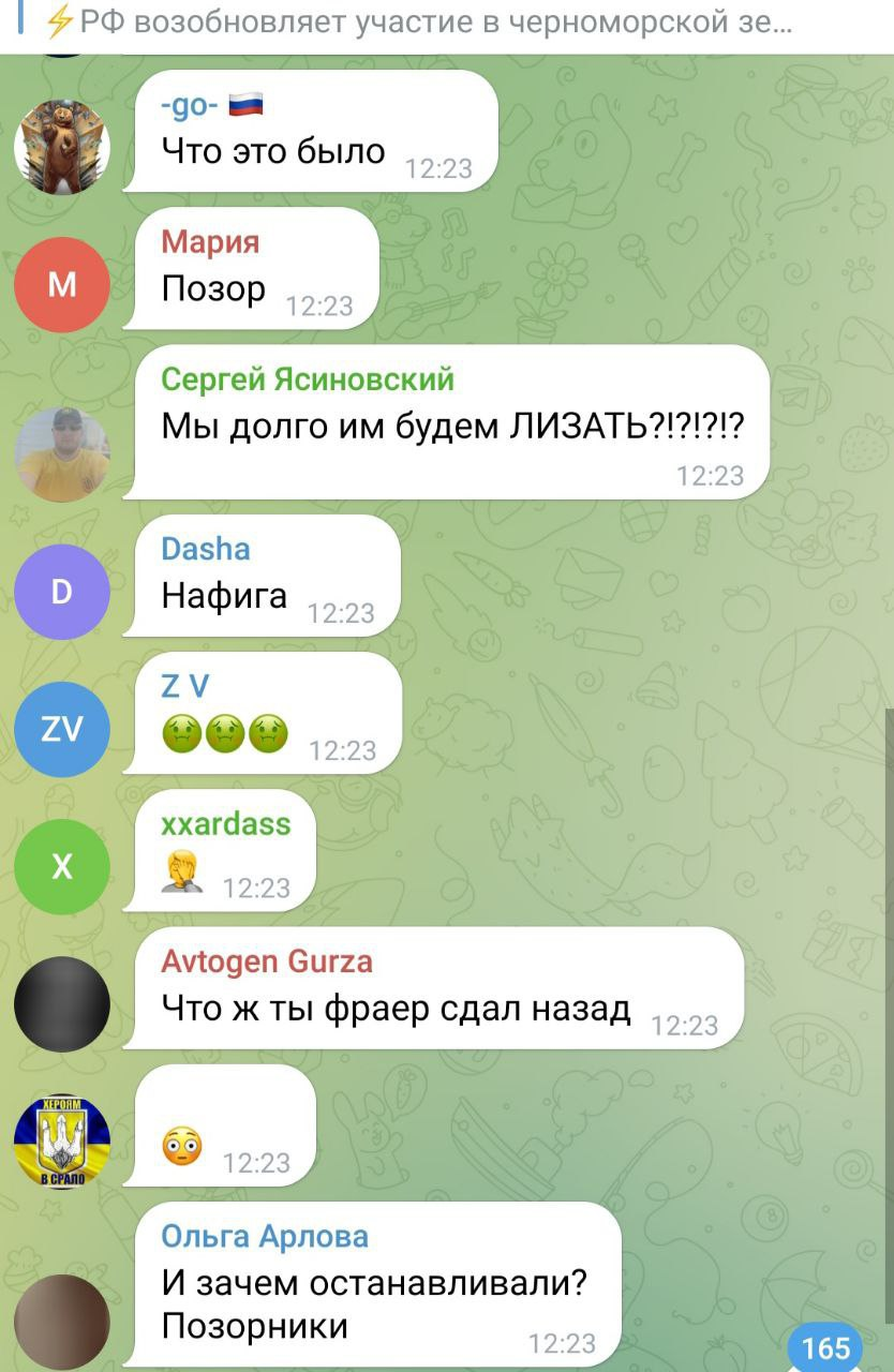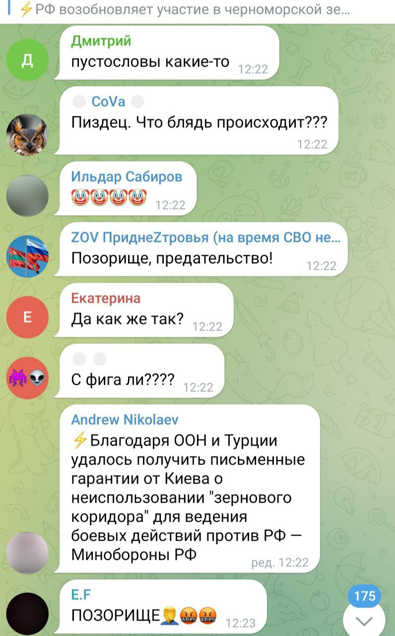 Хаха, много смешно се получи, доста олекнаха рашките: "Излизаме от сделката с пшеницата" и моменталният отговор:" Вие въобще кой сте ?"