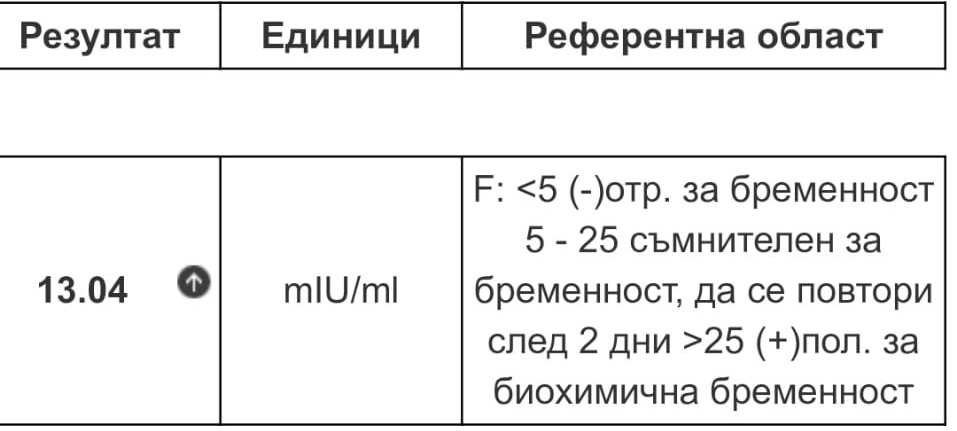 според указанието отстрани при стойнотси 5-25 пише "съмнителен за бременност" да се повтори след 2 дни