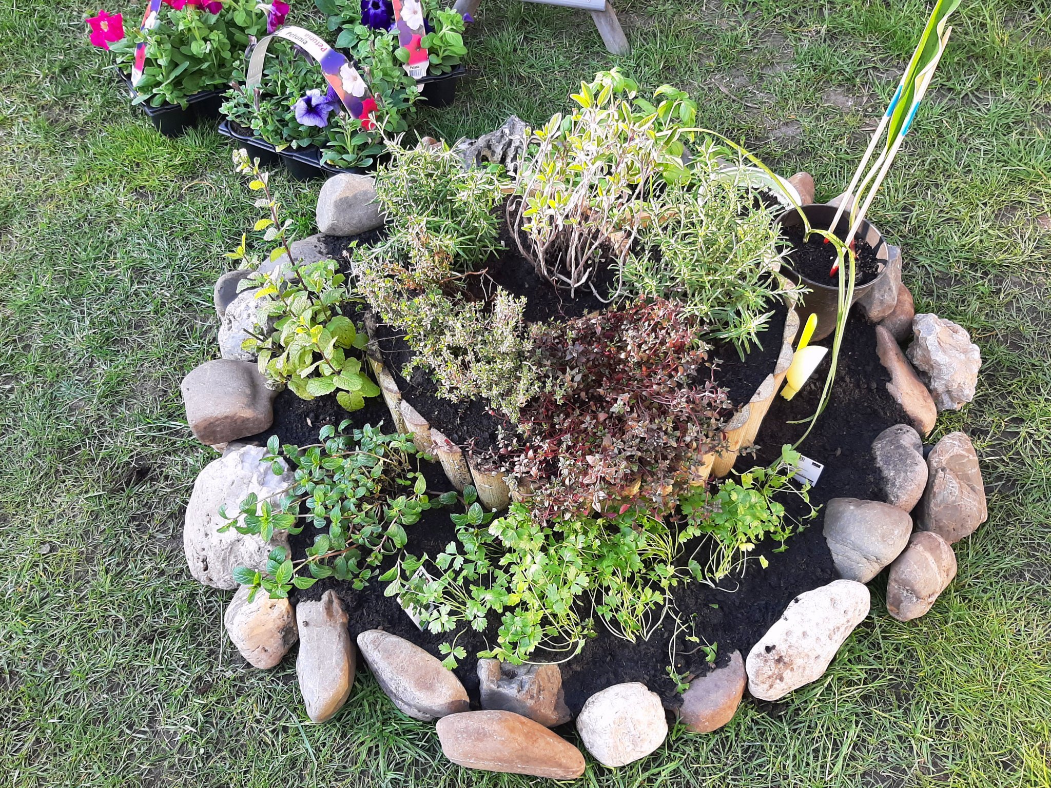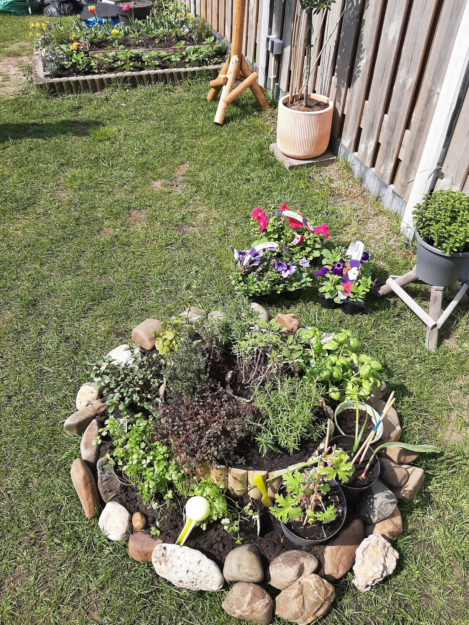Реа ето моята мини леха с подправки. Направих я през април миналата година (снимките са от тогава).