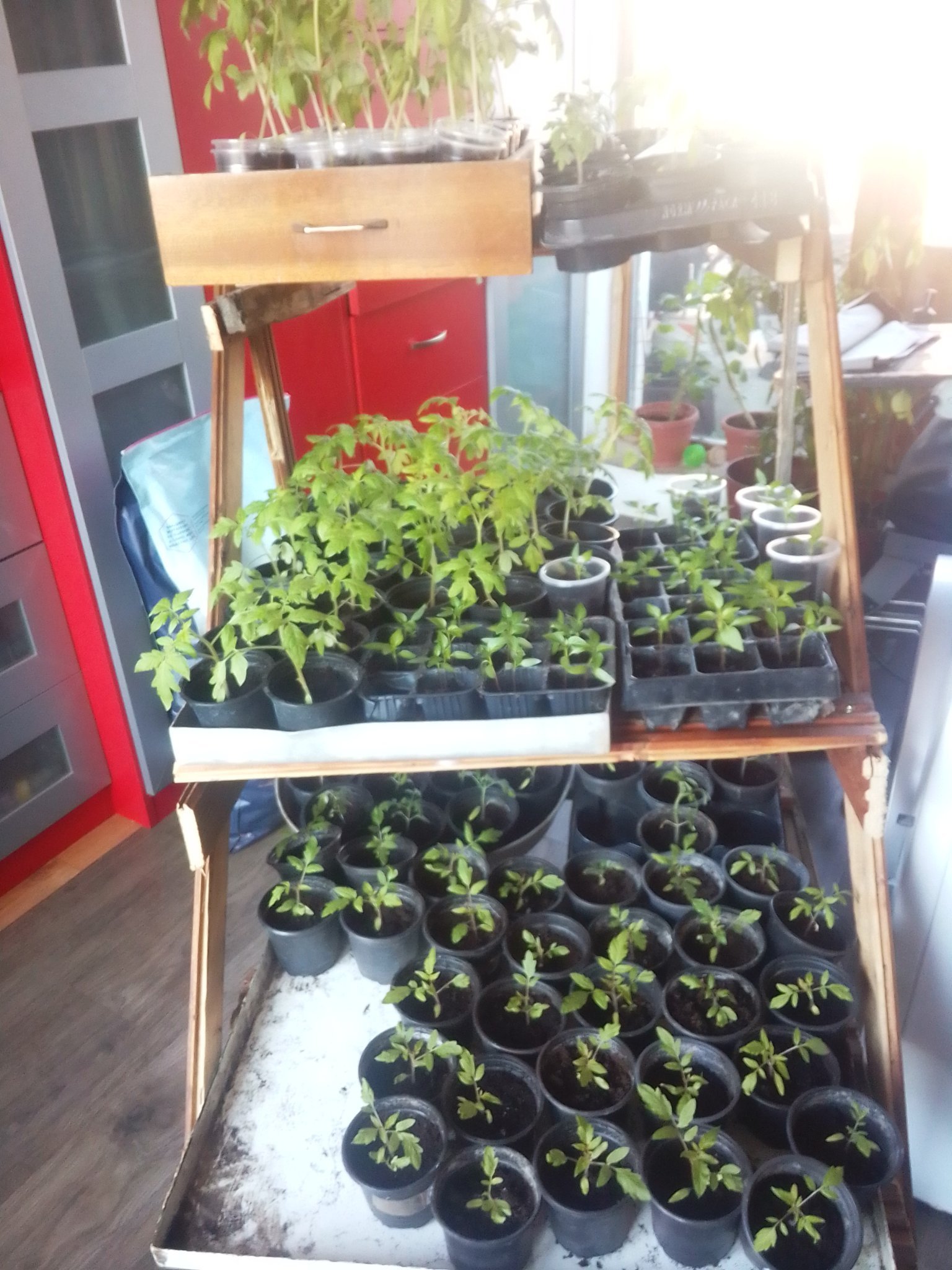 Разсадите ми и сега са апартаментски, в къщата температурата без отопление в момента не надвишава 5 градуса през деня. Цветята може би ще изкарат още седмица две. От средата на седмицата дават да се затопли и мисля да изкарвам през деня на остъклената тераса доматите.