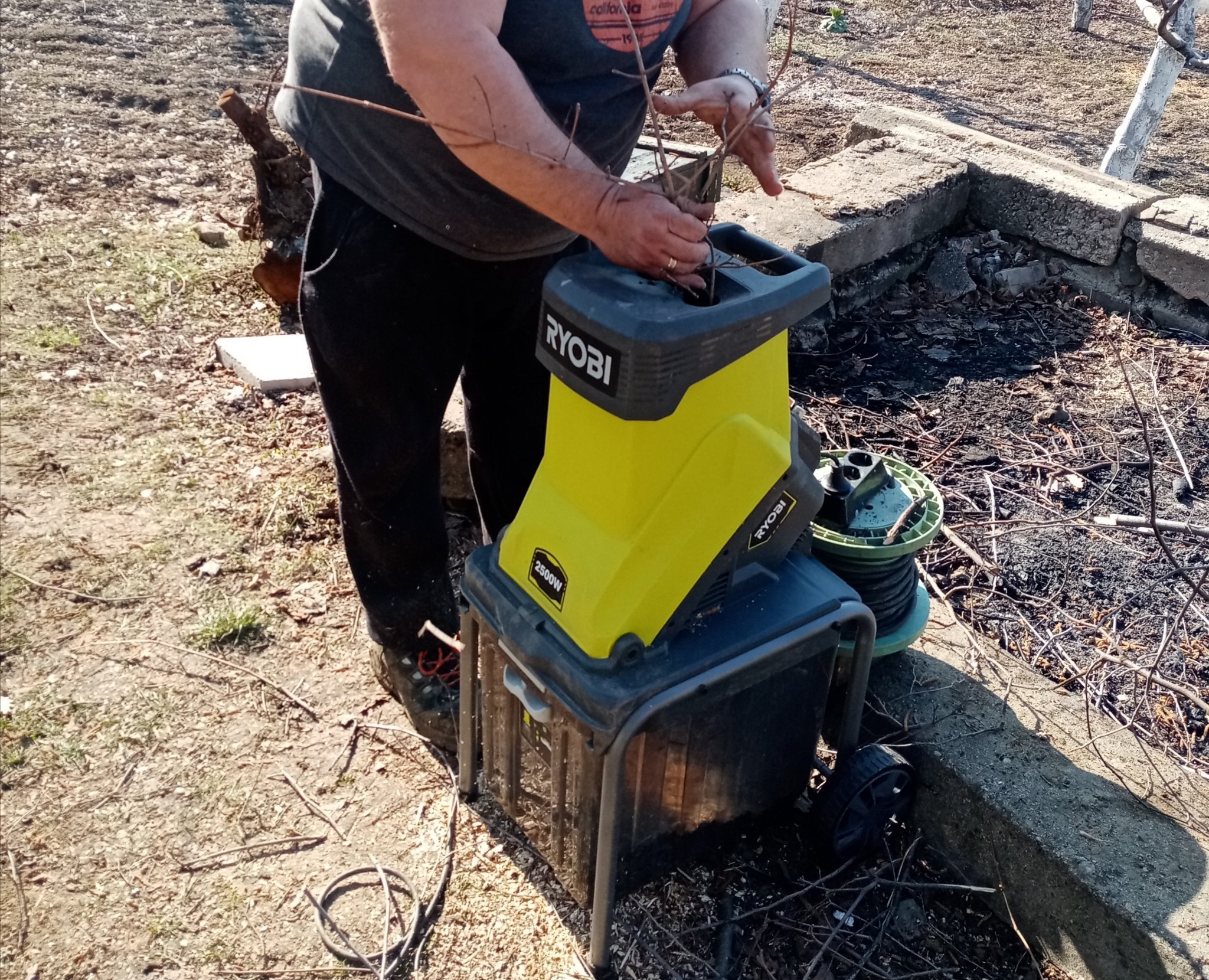 Няма как да не се похваля ,но си купих дробилка за клони, от евтината с ножове. 170 лв. Не очаквах много, но съм изключително доволна като за първи опит. Не успях всичко да смеля, но утре ще довърша. Млях клони от асмите и от розите, за утре имам още от асмите и от дърветата. Почнах с триците да мулчирам ягодите. Почти ги оправихме, остава ми само един ред, излишните отиват при съседката да не ги мисля.