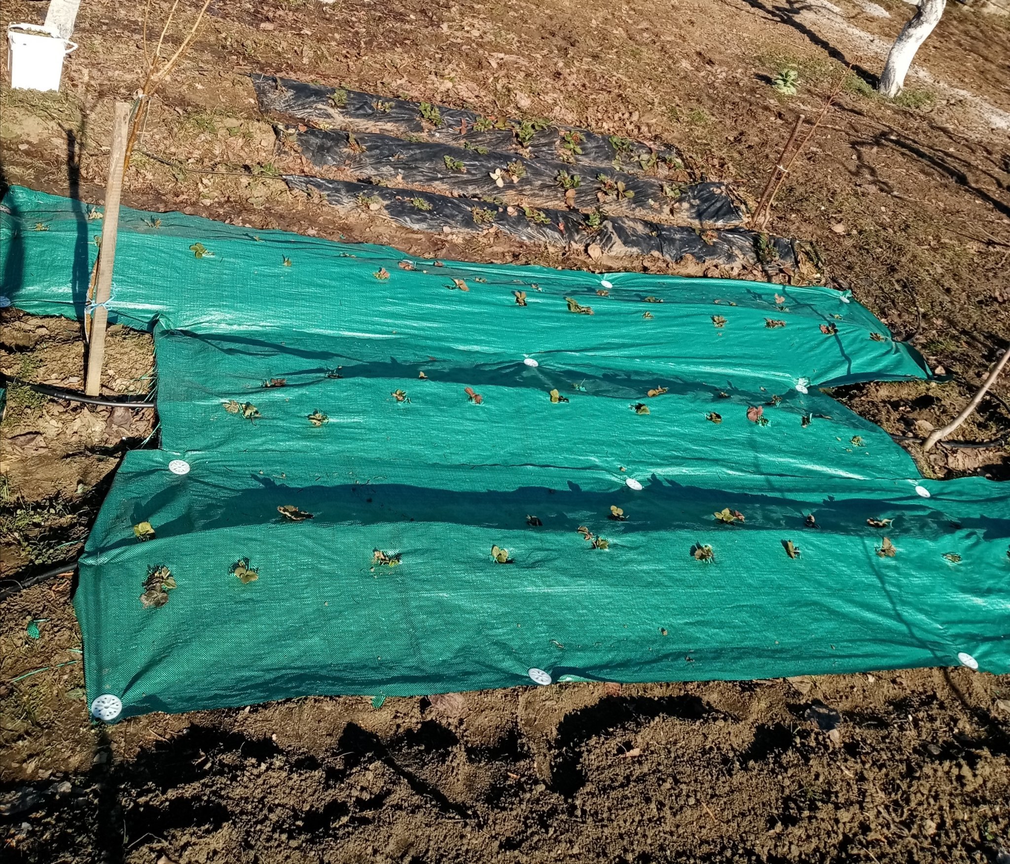 По оправих малко ягоди с ново зебло, че черното тънко и искам да го сменям. А тревата е яко набола и ще е яко да я задуша от раз 😁 Миналогодишните с черния найлон са с много рохкава почва, когато бъркам през дупките, няма и грам трева изникнала. Иначе е чудо...