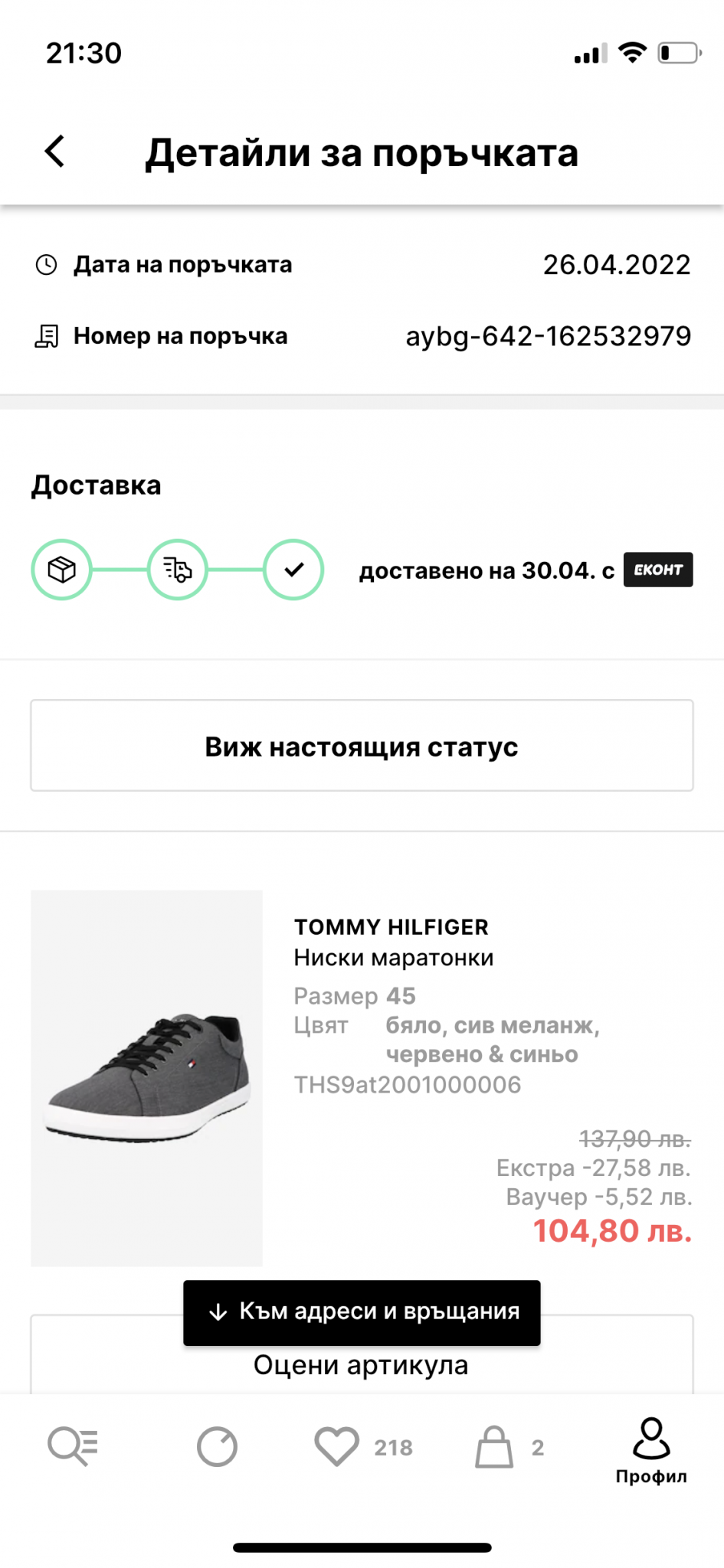 За да проверите статуса на връщането на поръчка в приложението, първо трябва да влезете във вашия акаунт. След това отворете неприетата поръчка. Ако връщането е одобрено, продуктът ще стане сив. Ако търговецът е получил артикула, но все още не го е обработил, ще видите съобщение за обработка на връщане и очаквана дата за възстановяване на сумата.