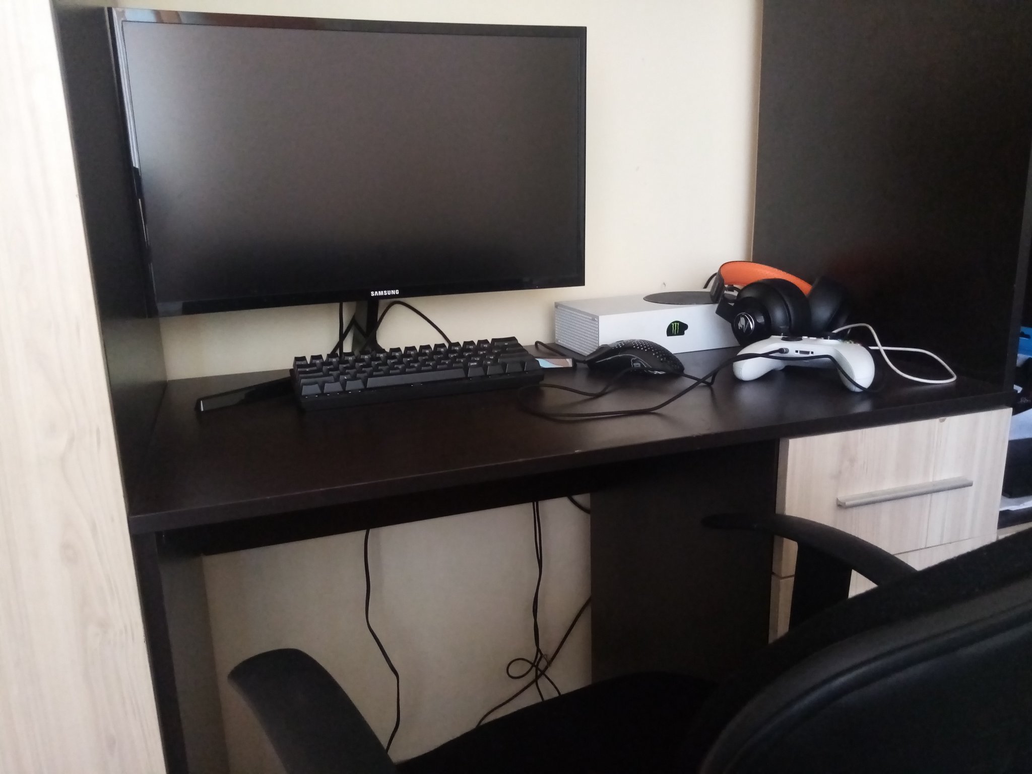 Не съм сигурна дали успях да прикача, но когато взимахме бюрото беше важно да има място и за лаптоп/монтитор , да е дълбоко, за да не се завира в монитора и да има място и за учебници.. понеже нямаме кой знае какво място сглобихме от икея плот с крачета и шкафче..