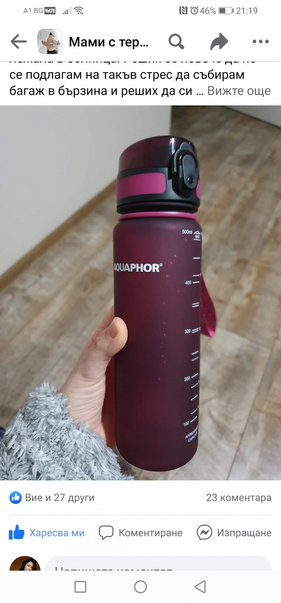 Момичета видяхте ли, една от майките в групата във фейсбук "мами с термин 2022" е качила шише с филтър. Много удобно ми се вижда, като кана с филтър само, че шише. Може да ми се смеете ама май не съм виждала преди. Сега ще разгледам и ще си взема сигурно, вместо да мъкна стекове с вода. Качвам нейната снимка. Не видях всъщност може някоя от вас да я е качила. Какво мислите вие?