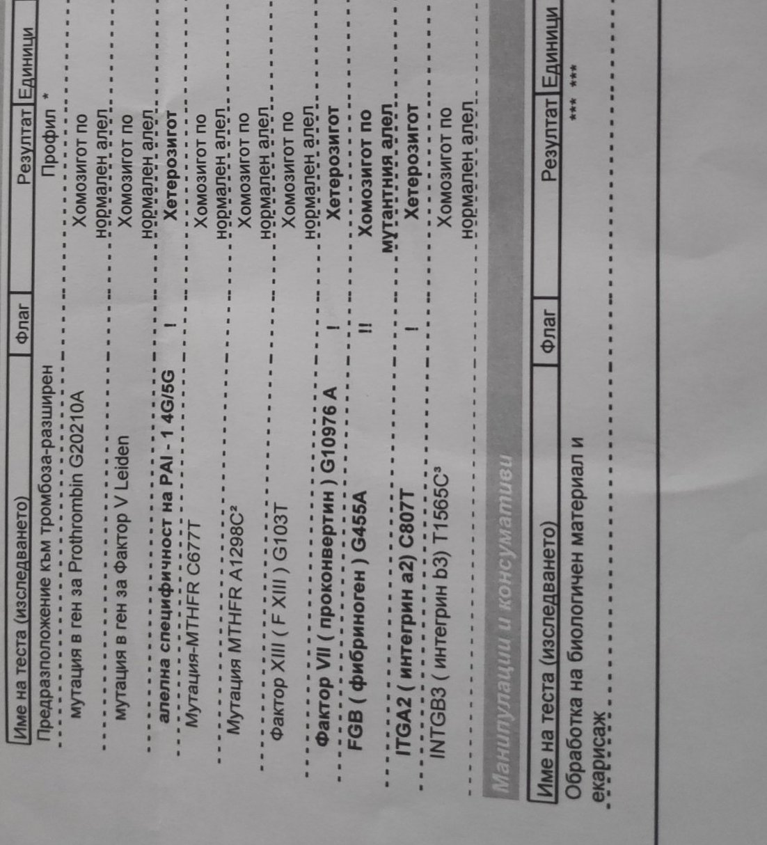 След 1 мисет ми назначиха изследвания за тромбофилия. Ето ги и резултатите: