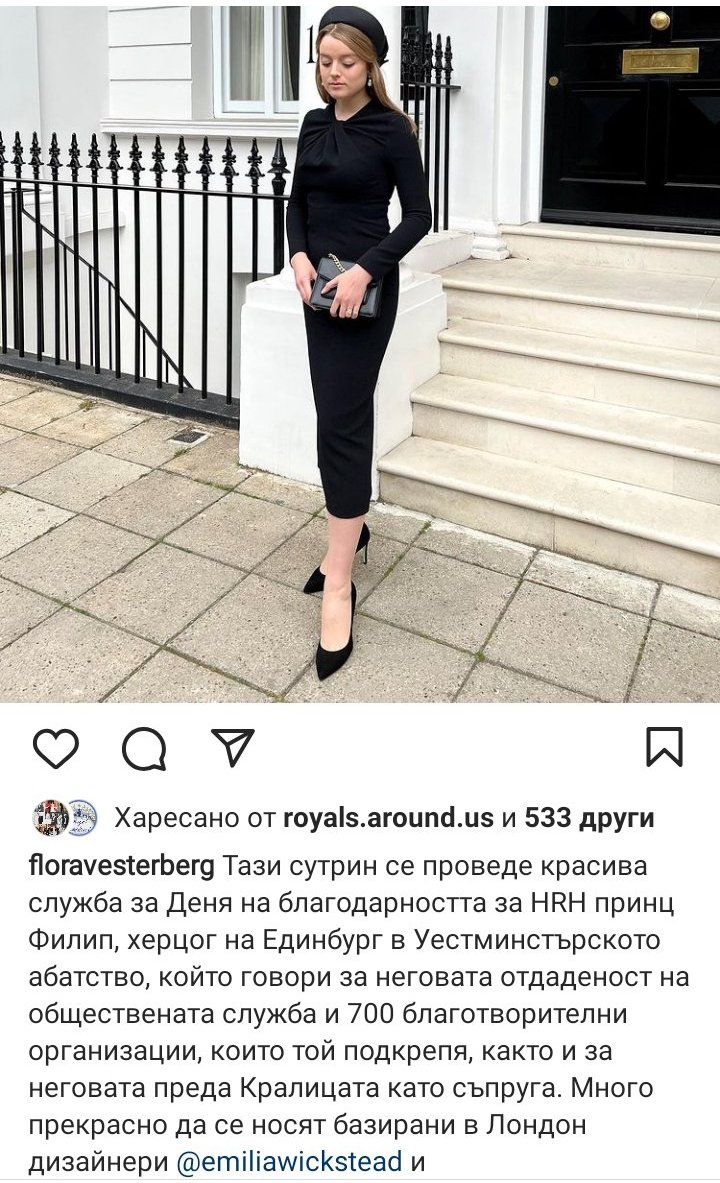 Флора днес я пропуснах, но снимките които е пуснала в профила си доста ме озадачават. Направила фотосесия пред дома си (предполагам), като тагнала марките на облеклото и аксесоарите и написала, че е хубаво да се носели английски марки на службата. 🙄