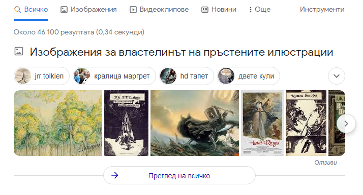 При търсене за "Властелинът на пръстените илюстрации" едно от предложените "подтърсения" за изображения е именно "Кралица Маргрет". Т.е. за много по-малко от 30 секунди излиза.