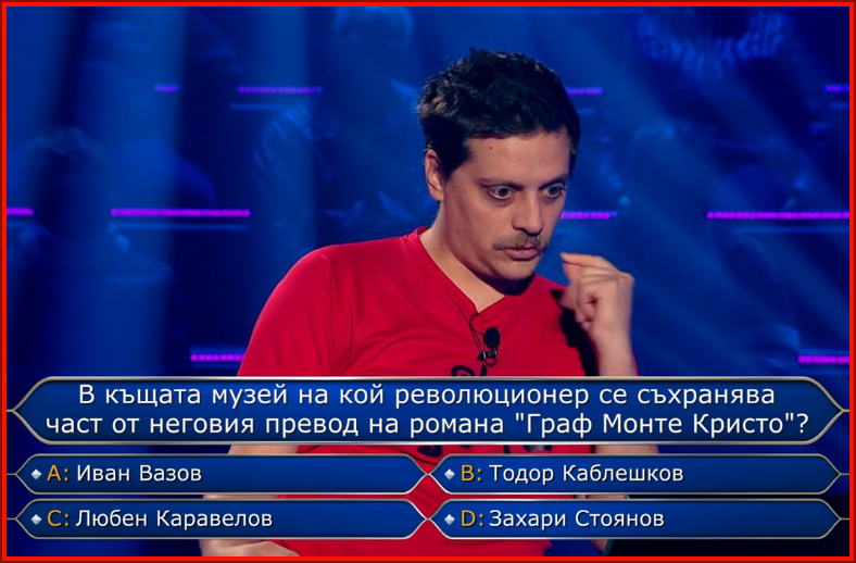 В предишното предаване Билалов обясни, че нямат право във въпросите да има уловки от типа "Кой от четирите острова..." и единият отговор да не е остров. Какво беше това с Вазов в такъв случай??