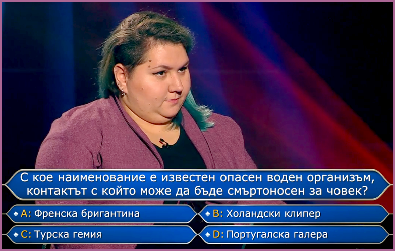 Ееее пропуснах момичето, явно е изгоряла веднага на въпроса за 10 хиляди?