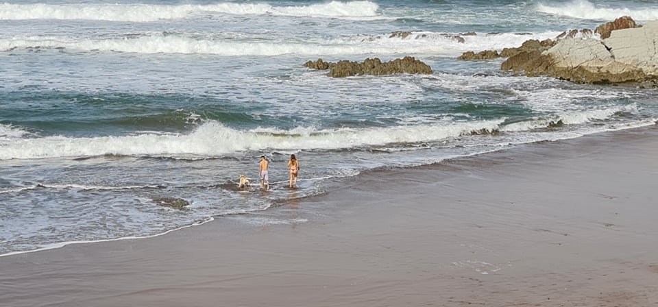 Взел е страха на кучето - хем кучето го обикаля и го пази, хем и то самото  се пази от дечко. Че още не може да си контролира радостта, като го докопа.
