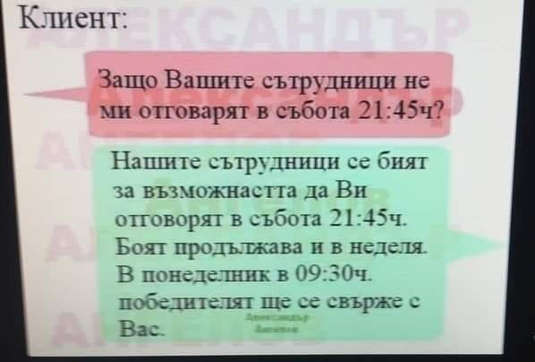 Иначе в БГ аз подхождам навсякъде все едно са ми клиенти. Любезно и кратко и ясно обяснявам какво искам. В повечето случаи това работи безотказно. Хората също са любезни с теб, ако подходиш към тях културно и мило. Ако не сработи, мога да стана неприятна. Веднага се обаждам на шефа.
