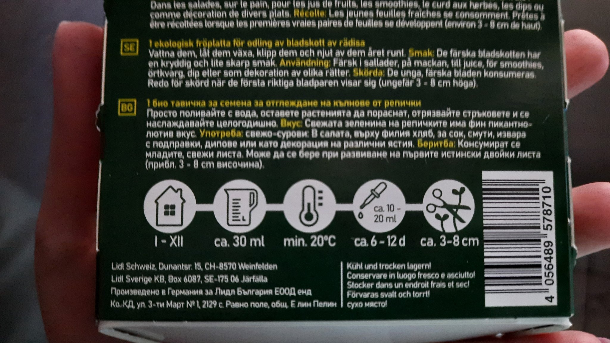 Това пише на опаковката на семенцата /според мен, не са точно кълнове, а микрорастения/: