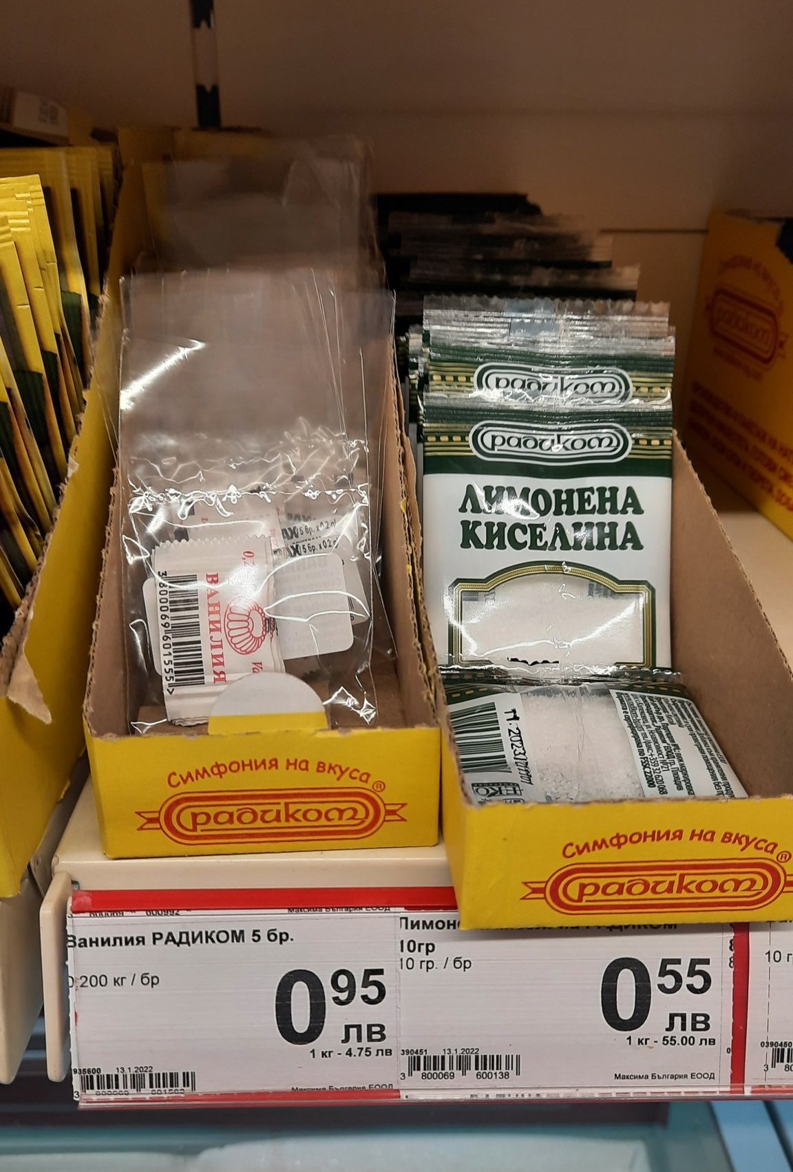 Нямаше да е зле ванилията наистина да е 200 грама, обаче е 5х0,2 гр (доколкото виждам на пакетчетата)...А лимонената киселина в подобен грамаж в Лидъл е 19 ст. Но друго си е килограм лимонена киселина да струва 55 лева! 🤪