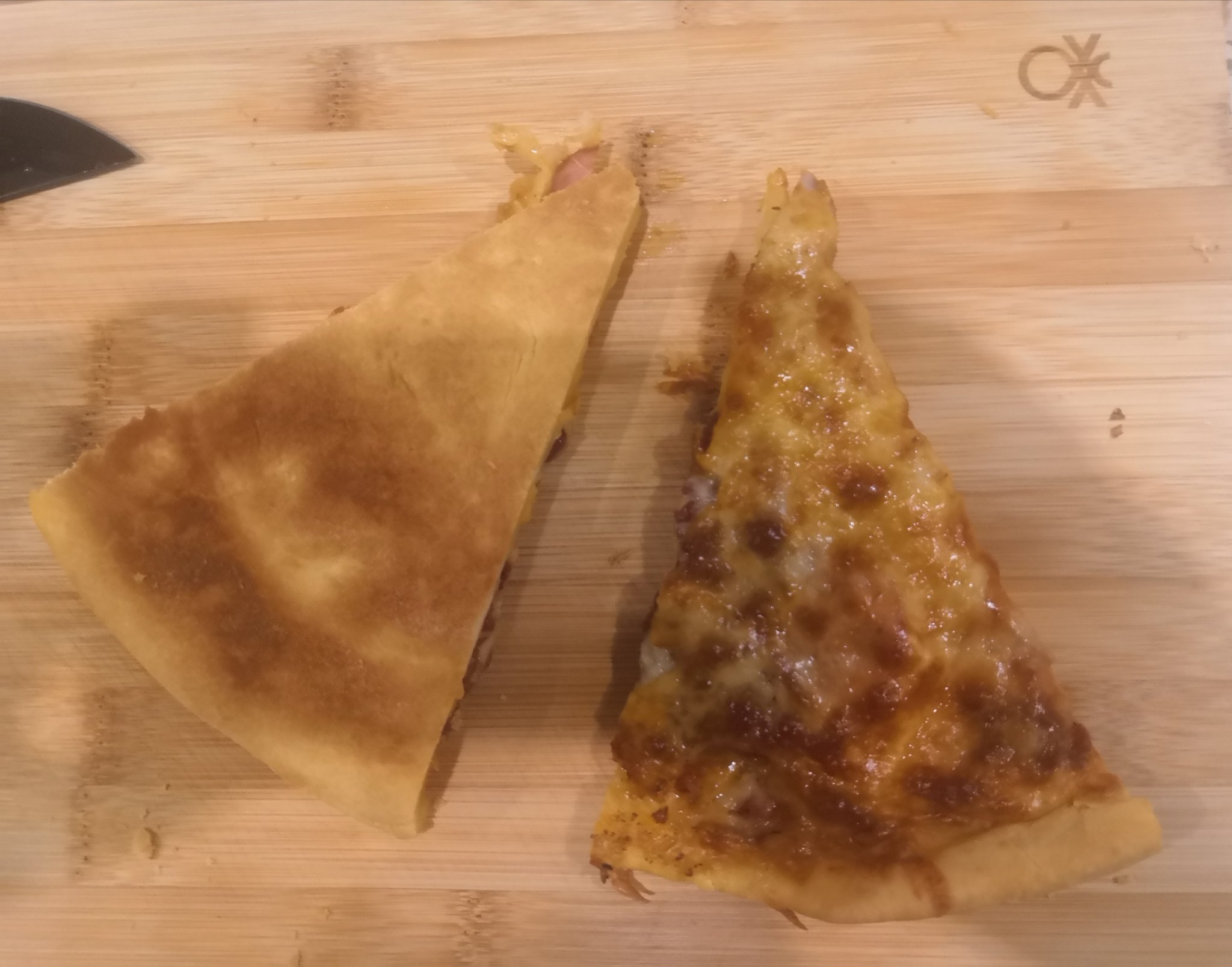 Хареса ни тестото за пицата. Сложих го на парното за 3-4 часа да се размрази и мъжът ми направи пица за вечеря с продукти само от Лидл.Останаха две парченца от цялото тесто