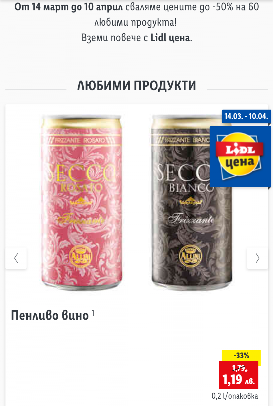 Долче, кенчетата вино са на 1.79 лв от поне месец.