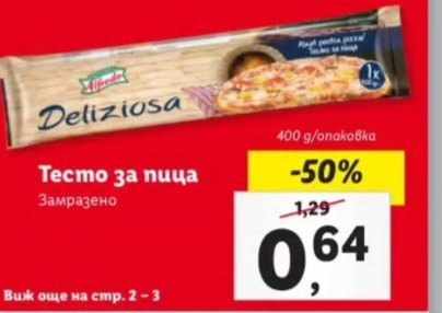 Обаче тестото за пица в постоянния асортимент е 400 гр (1 брой), да си знаете, ако ви трябват 2 броя за пицата. 🙂