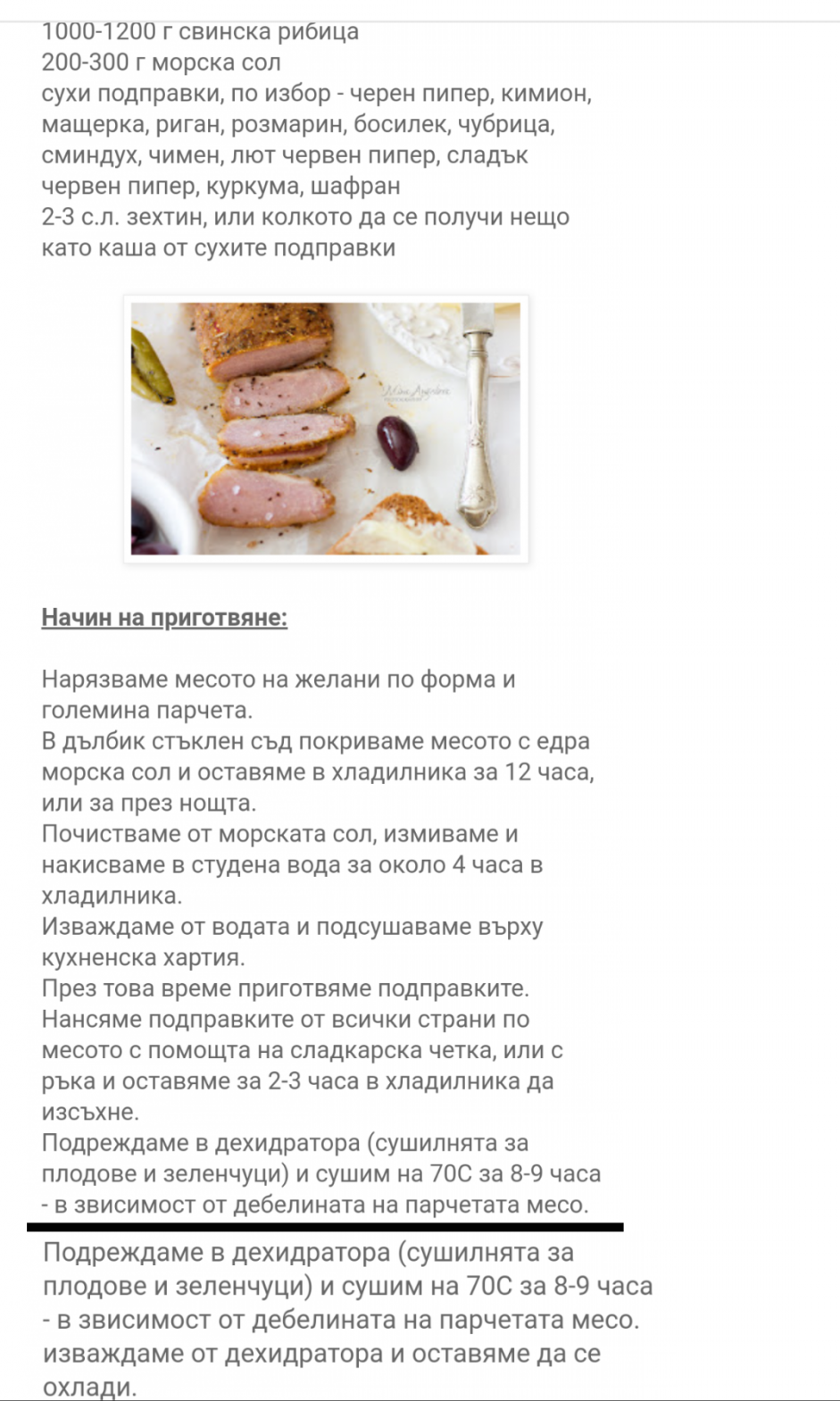 Аз правя сушено свинско филе в момента. 🙂 По тази рецепта: