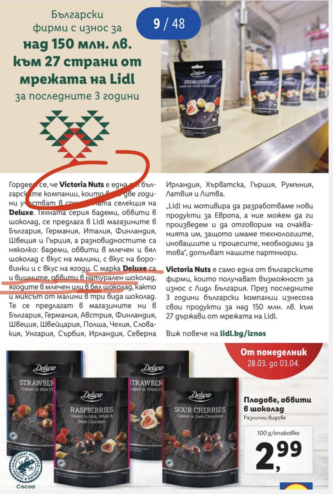 Това не го знаех. Сега поне ще знам, когато няма в Лидл да издирвам евентуално (ако има на пазара ни в друга разновидност) на Виктория Нутс други такива плодове в шоколад (както казах- на марката им Rois не ми харесаха като алтернатива, и в състава на опаковките има разлика ).