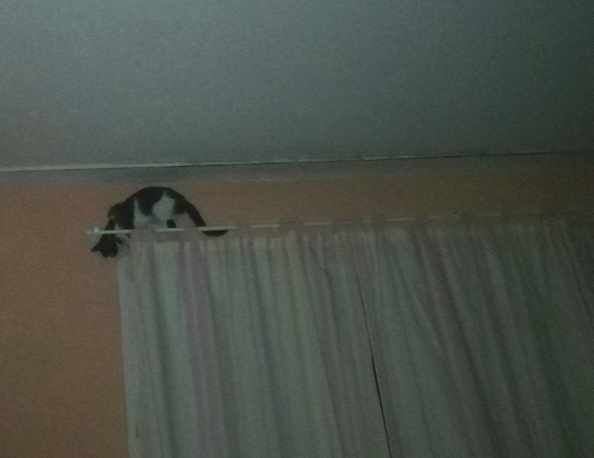 За пердета не мога и да си помисля. Моите котаци полите ми надърпаха, как да помисля, че няма да се заяждат с пердета?! Много обичат, когато съм с по-дълга пола, застанала съм на едно място и обикновено правя нещо на кухненския плот, да се крие единият под полата ми, а другият да го дебне и закача... 😢