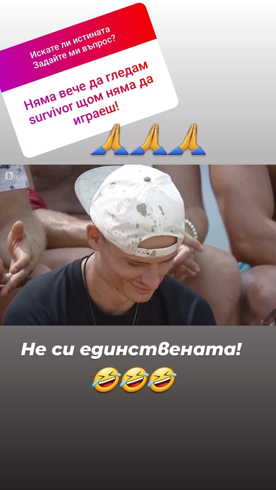 Също не ми хареса, че беше загубил мотивация и другите цял ден го омайваха да си говори с тях след разбъркването на племената. Много ме дразни като участници се отказват сами или някой трябва да ги побутва, че да играят.