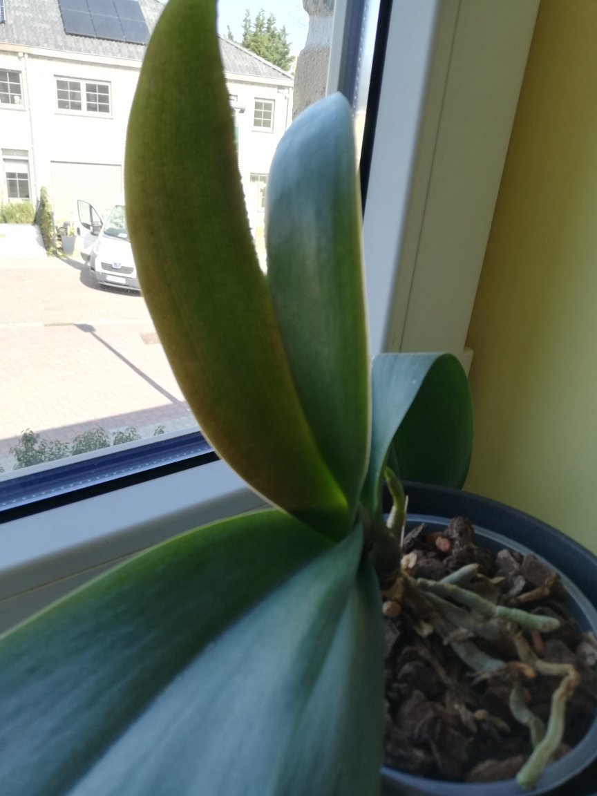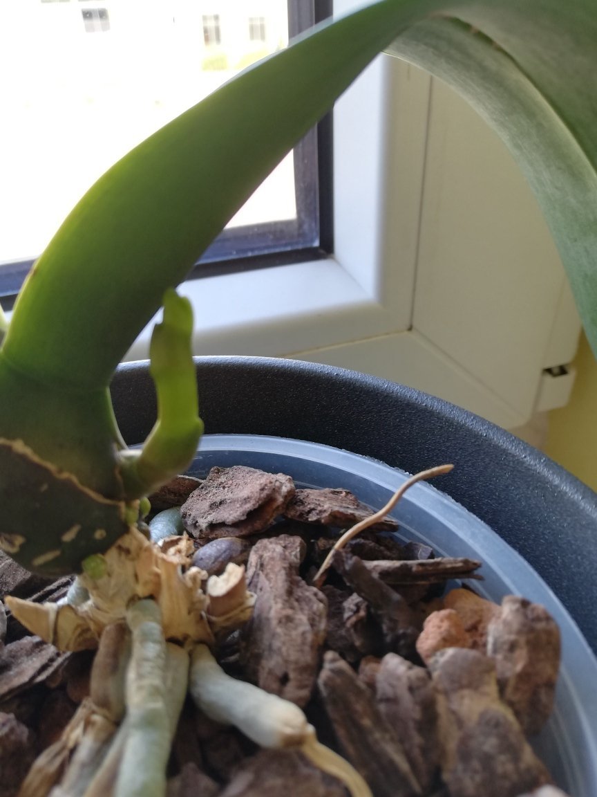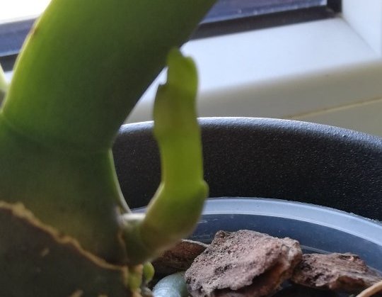 И аз пак да се запиша в темата.Някои знаят че си нямам идея от отглеждането на орхидеи,но иначе купувам и се мъча с тях. Миналият път показвах една орхидея,която отглеждам като маруля вече над година  и половина без да се случва нищо-само от време на време по някое листо се показва.Местих я на сто места, май най-накрая си намери точното място. Та има някакво раздвижване. Показвам-да ми кажете какво е това .
