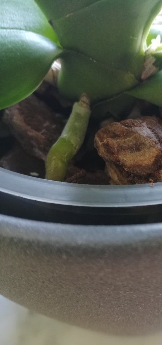 Смени субстрата, ако има изгнили корени ги изрежи, дезинфекцирай режещия инструмент преди да режеш (най-добре на силен пламък до червено и после веднага се изстудява със студена вода), а после и отрязаното място се дезинфекцира с 3% кислородна вода. Намали поливането на 3 седмици веднъж. Фалеанопсисите (големите) им е по-добре да са на сухо отколкото постоянно влажни. Това не важи за минитата и някои други видови фалеанопсиси.
