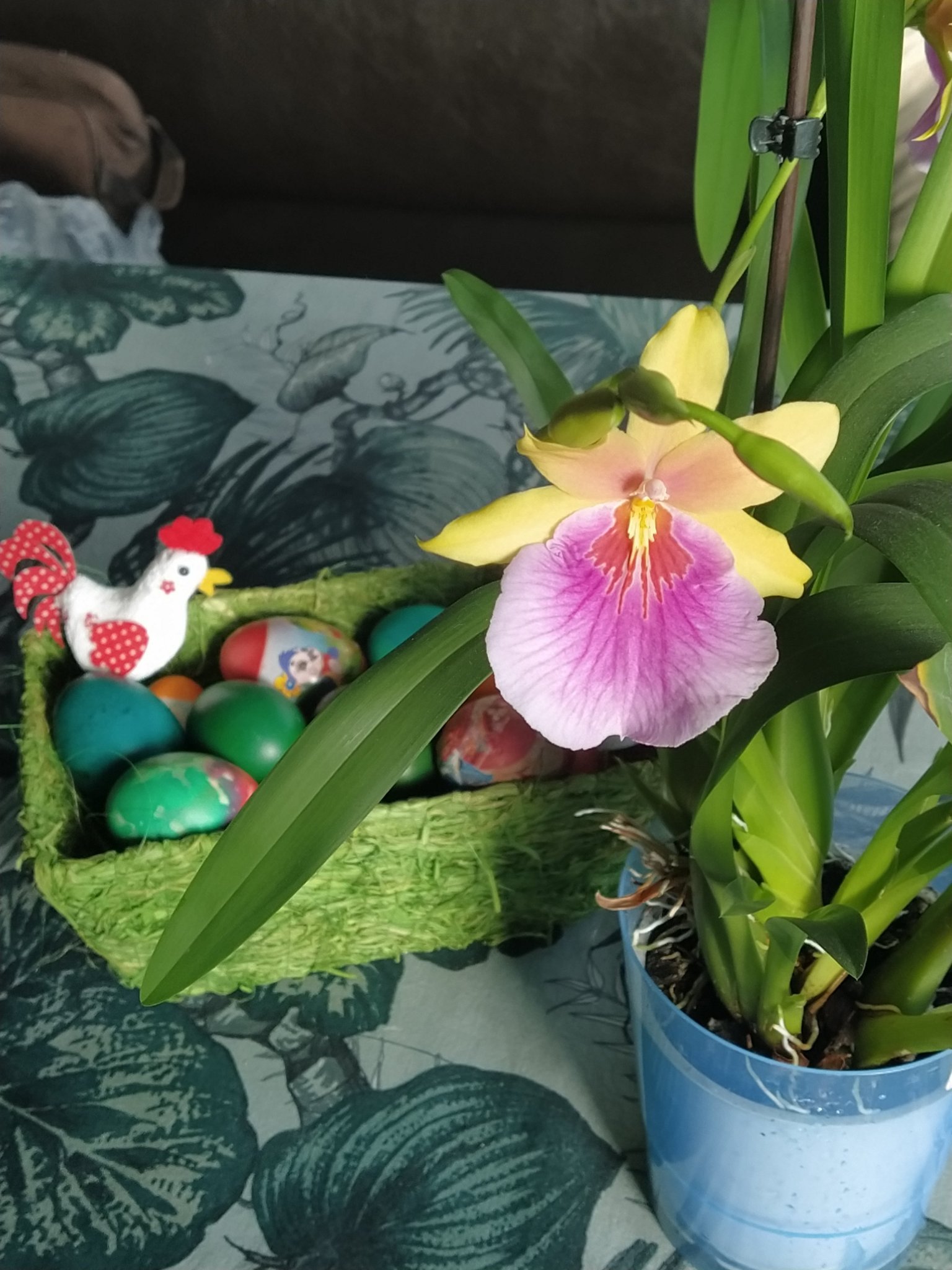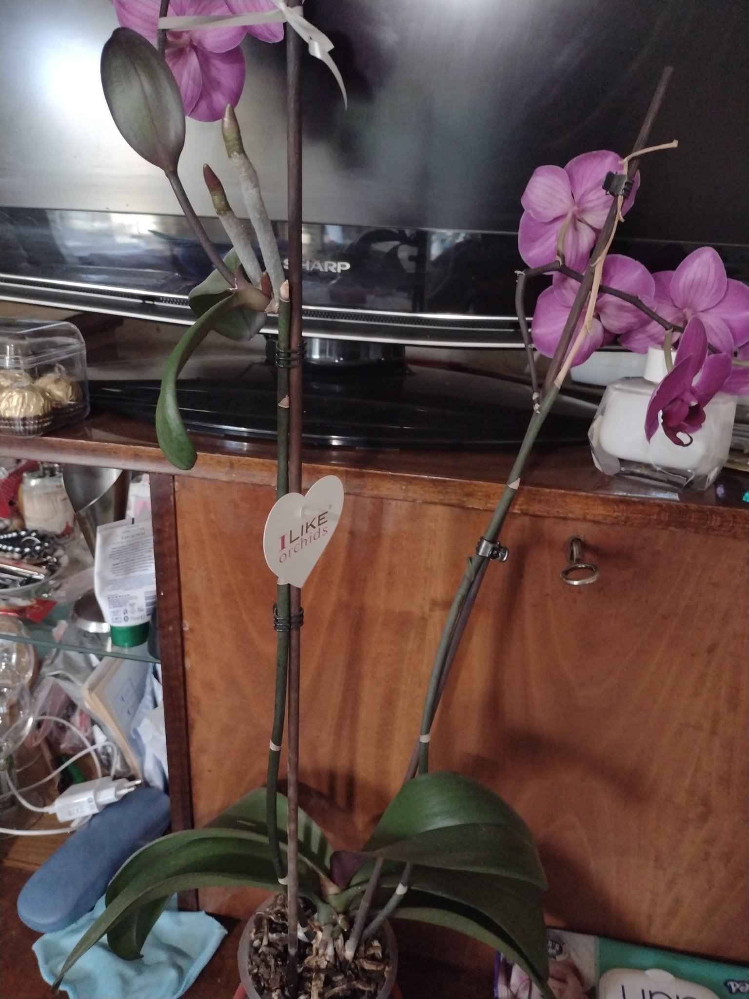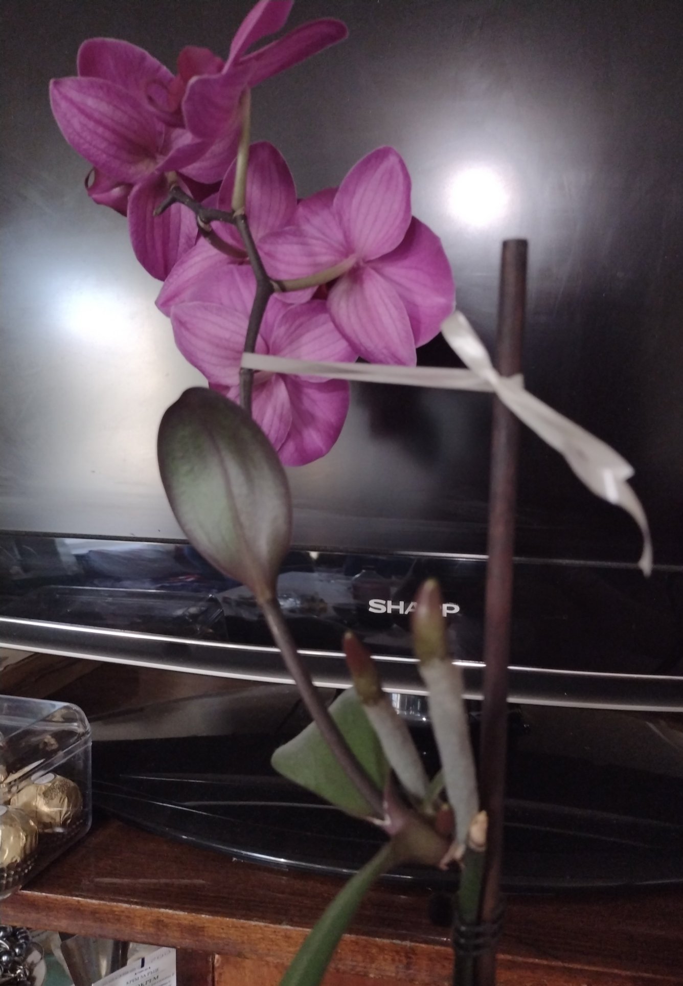 Явно е в някакъв активен период, пусна цветонос (1 само), пуска и корени,..Няма да сменям грижата, да не я повредя нещо..