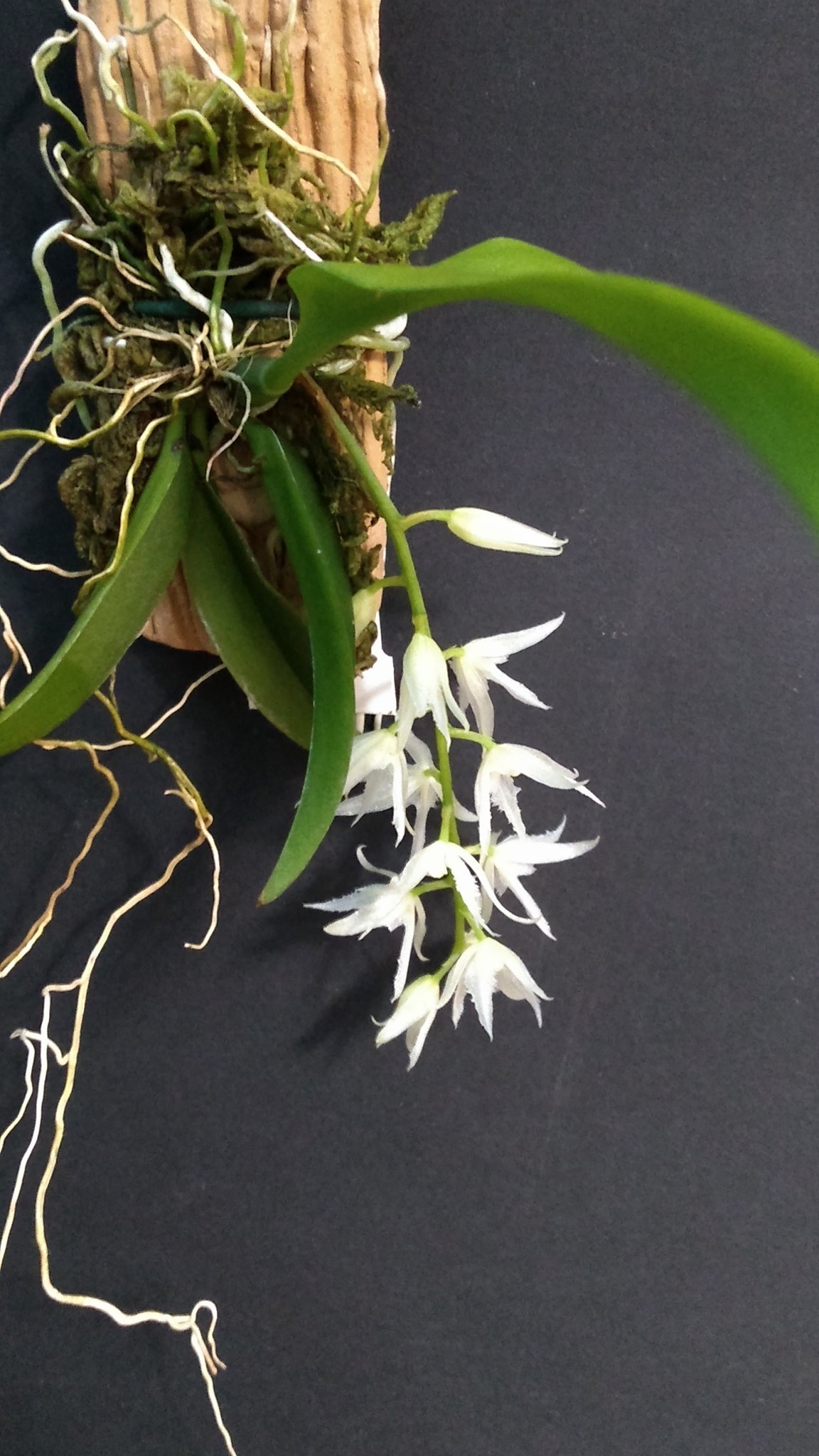 Сдобих се и с ванда мини. Дойде със стъклена "ваза", в която бяха корените. Разбира се, някои от корените бяха счупени, а други просто изсъхнали. Почистих я и я пресадих. Доби доста приличен вид. Загадка е какъв цвят са цветовете, тъй като е без цветове. Изненадаха ме няколко корена доста дебели - около 1 см.