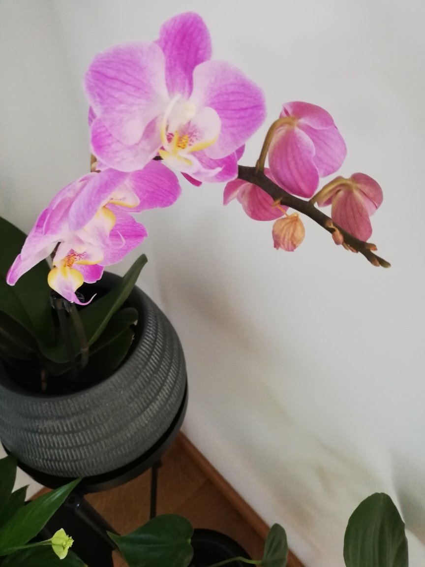Phloxx и на мен това ми мина през ума.Но,имам приятелка,нейната орхидея е на пода целогодишно,пред прозорец без перде и прозорецът се отваря постоянно,дори и зимата,т.к. са пушачи.Е тая орхидея не спира да цъфти.Нито тор е виждала,нито грижи.Забравих да спомена,че живее в Холандия,там влажността е постоянна