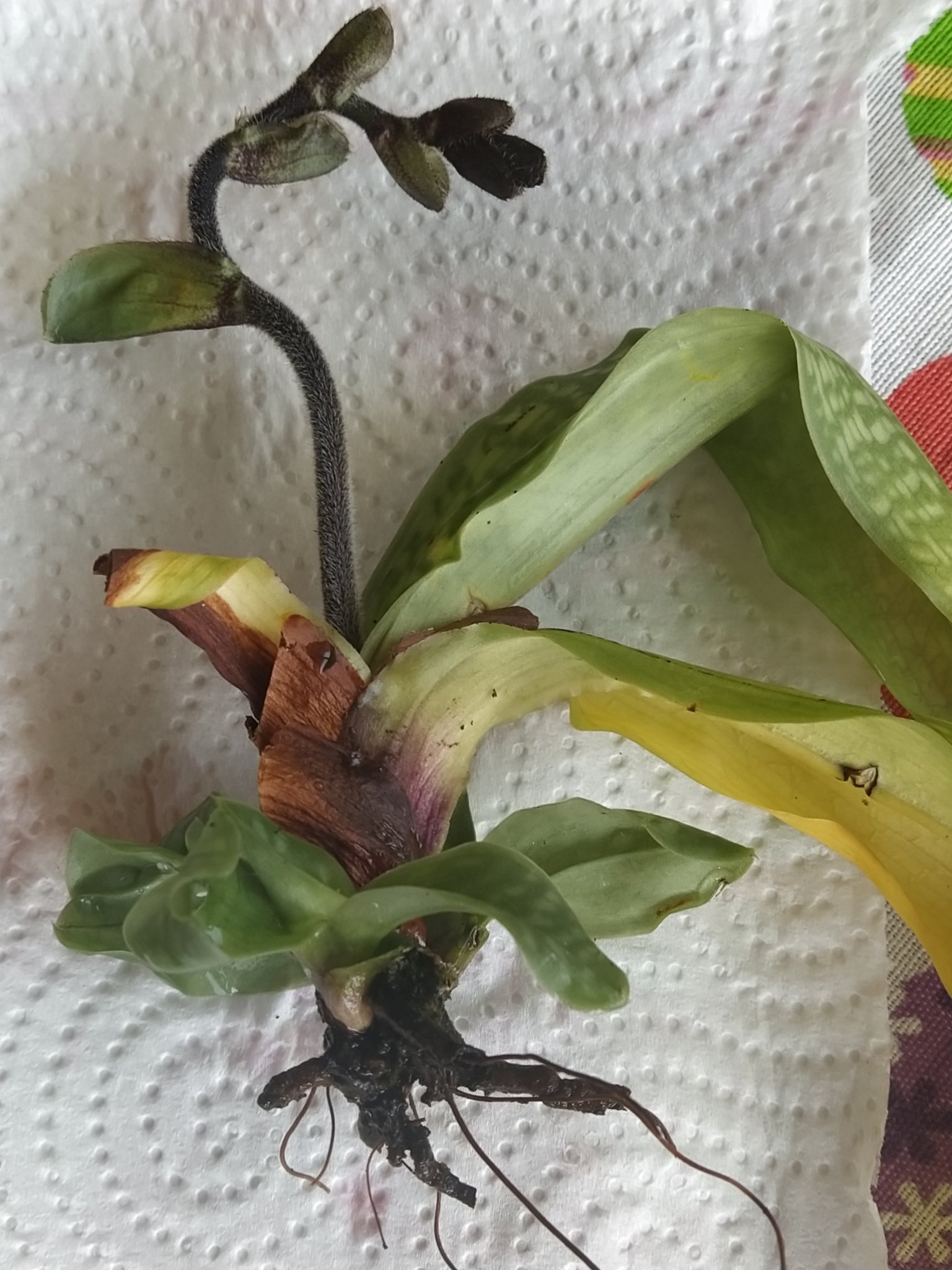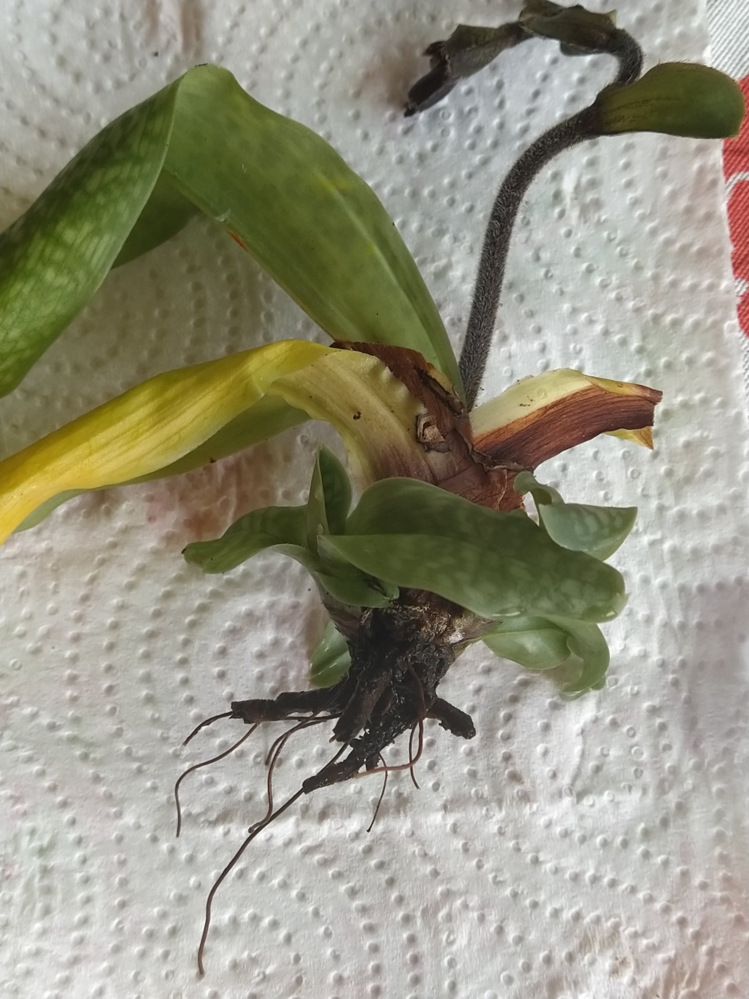 Всички корени са изгнили. По средата имаше гъба както и много сфагнум. Дори неполиван над две седмици субстрата беше мокър вътре. Сега го посадих като най отдолу сложих камъчета и имах субстрат за Камбриеви от него сложих. Ако му е писано ще оцелее.🙏