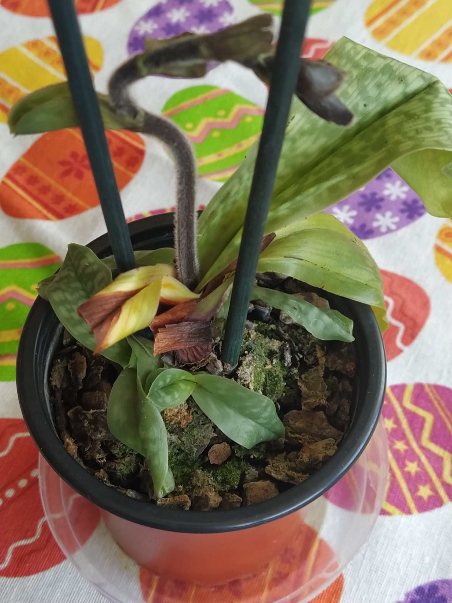 За фалеанопсиса: аз бих изчистила мъртвите корени и после бих пръскала останалите корени с дезинфектант ( кислородна вода 3%) и бих го оставила да постои на въздух без да е в кори. Чак след това бих го сложила в субстрат от кори и др.добавки.