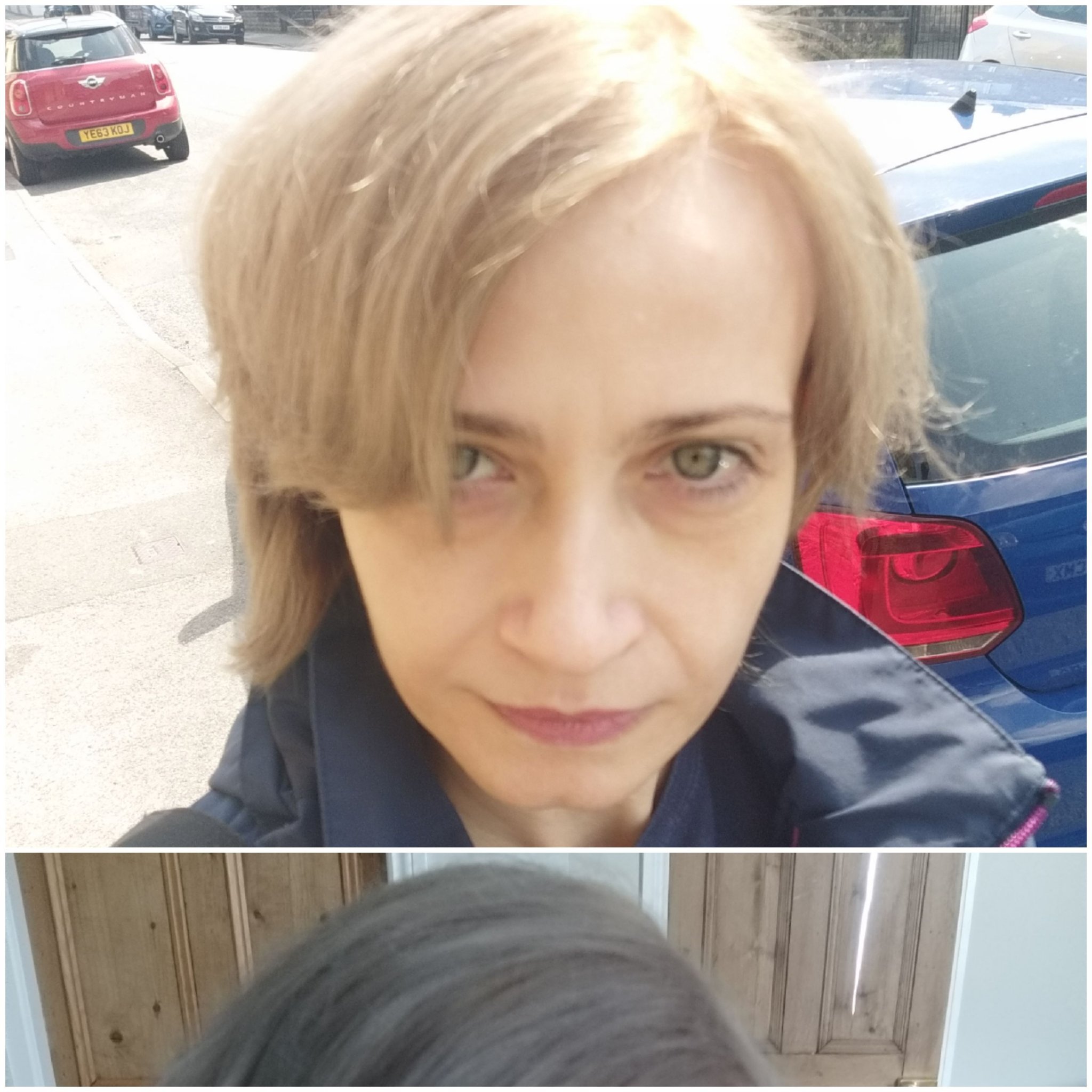 Аз не издържах и днес преди да отида на фитнес се боядисах наново. Имам се за леко безкритична Joy , но дори и аз не можах да понеса този нюанс на ... сиво Simple Smile