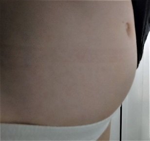 Това усещане за пренапомпена топка, която нося, не можах грам да свикна, просто не го понасям и това е. Стоя примерно до бюро, плот и т. н. и не мога да преценя колко да се приближа, т. к. корема ми стърчи. Но най-вече към самото усещане за разпънатост имам непоносимост...