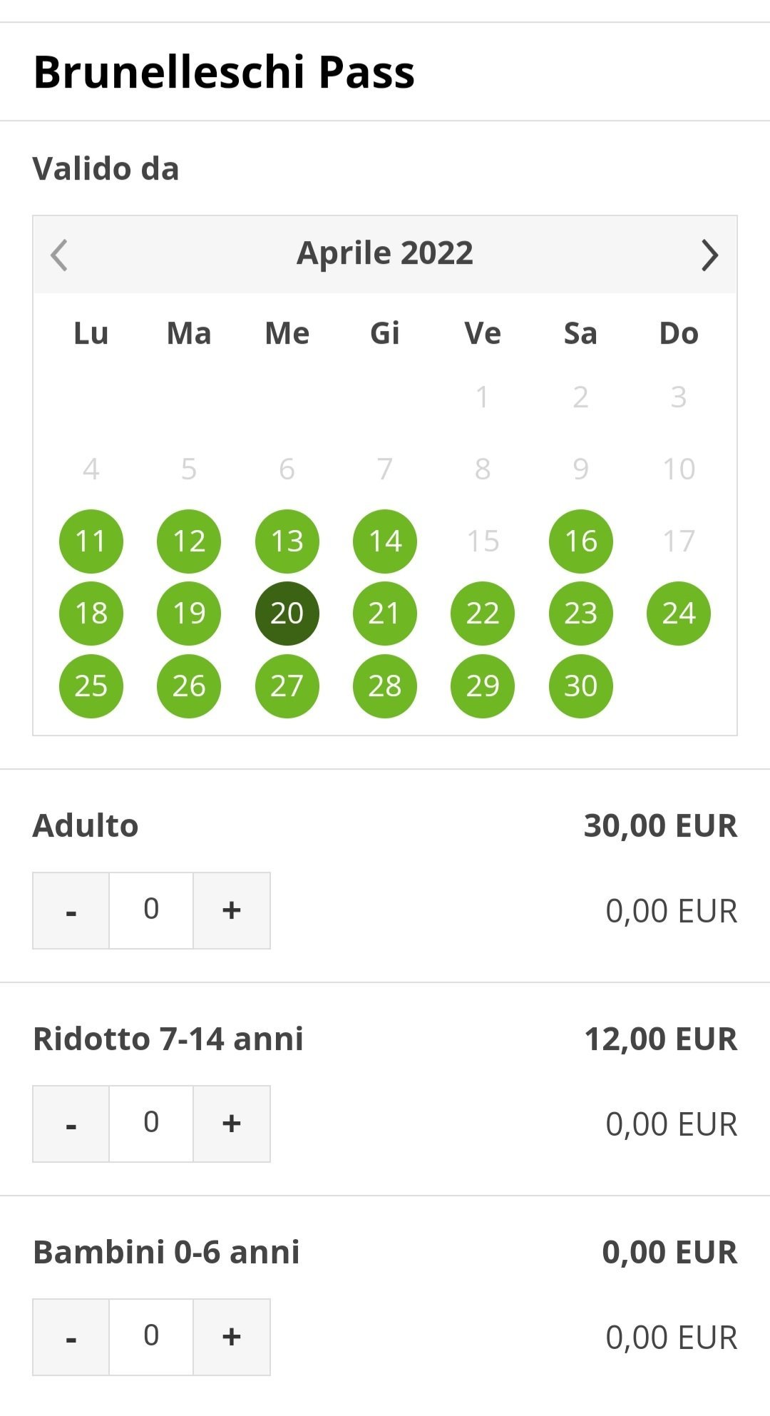 Ако за Uffizi до 18г е безплатно, от 18 до 25 - намален билет, паса за Brunelleschi е безплатен до 6г, намален от 7 до 14г. и т.н.