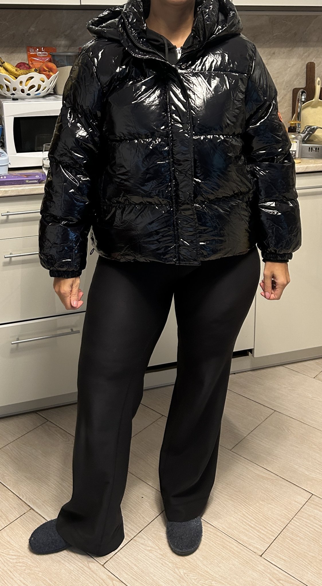 Дължина от под мишницата до долу е 37 см. Рължина на ръкава отново от под мишницата 45-46см, гръдна е 62 см под мишниците. Качвам две снимки, на  дъщеря ми, която е 152 см и на мен - 168 см. На мен ми е късо на ръкавите, на нея й е огромно.