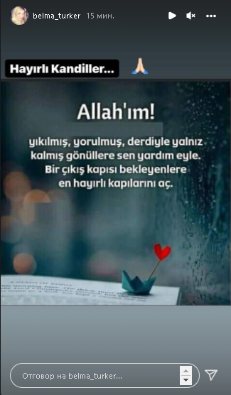 Точно преди 15 минути леля Белма е влизала в своя профил. Качила е свой пост, но не е отследвала Керем.