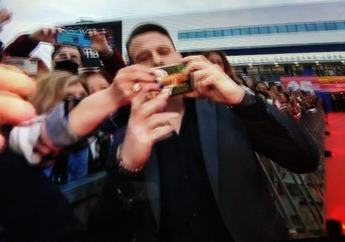 Съвсем съвестно гледах пристигането на гостите /ще ми се наложи да пазя леглото и стаята/ и без да съм пристрастна, но Керем бе чакан с огромен интерес. Едва "долази" до входа. Прекрасен, слънчев и харизматичен. Постара се да обърне внимание на всеки, доколкото можа. Испанските му колеги го отминаваха, но се усмихваха съвсем добронамерено. Опитах се да следя коментарите. Много малко, ама много малко /около 10 - поне това видях, изписаха името на Ханде и плачеща иконка/. Най ме разсме една мома, която след зададен въпрос къде е Ханде, отговори, че е бременна и си е у дома, защото не може да пътува. Та хора разни, свят различен.