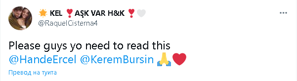 И една огромна молба към Керем и Ханде, да направят така, че да изпълнят последното желание на това влюбено в двамата момиче. Ето така се прави.Така постъпват истинските им фенове. Не им пожелават приятен път с други половинки. Борят се да бъдат щастливи заедно.