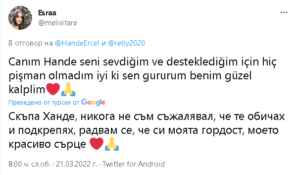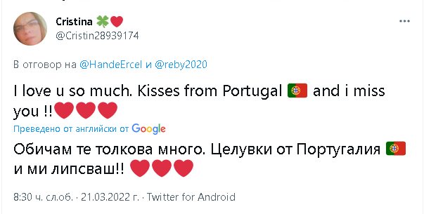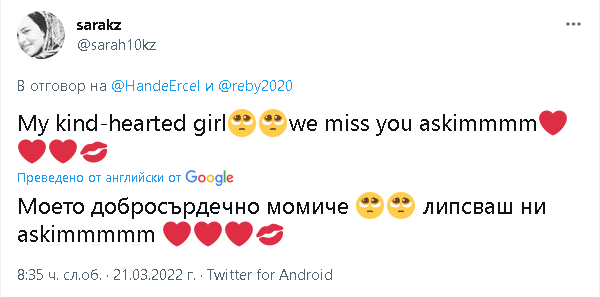 Феновете са загряли Туитър да благодарят и да изказват своето възхищение от нея. Толкова много са благодарностите. Качвам само няколко. Всички казват, че я обичат за доброто й сърце и че много им липсва. Сега е ред на Керем да се отбележи и това момиченце ще бъде най-щастливото в света.