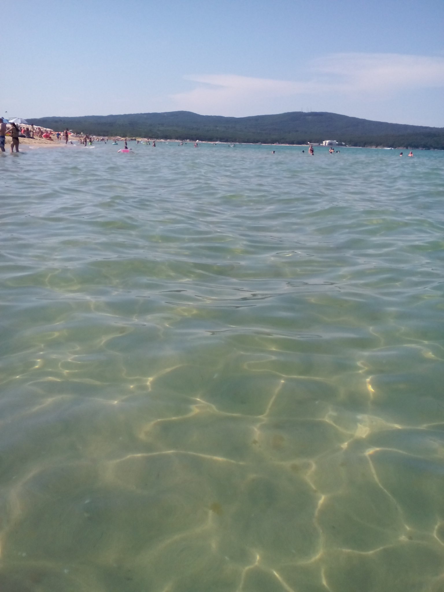 Водата е чиста и приятна. Времето снощи Валя, но днес е добре и става за плаж. Магазини и ресторанти работят.