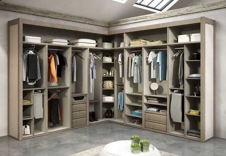 Моля, дайте идеи за открити гардероби в буквата П. По конкретно, нз как да обособя ъгловите места. Дали да останат дупки за куфари напр, или и аз нз как. Визуално би трябвало да поръчаме нещо такова по като П... Дайте идеи, плийз