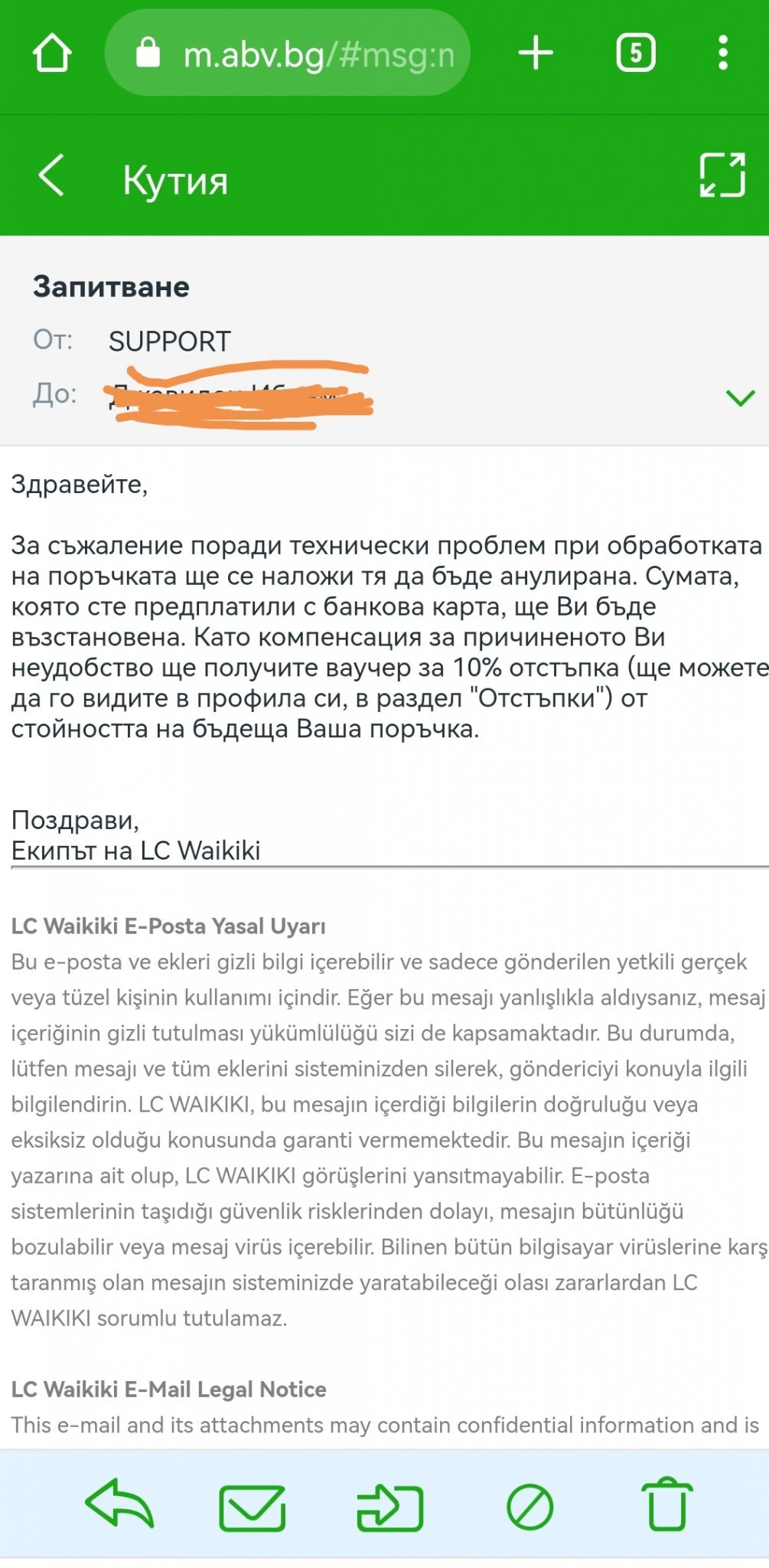 Подай както до КЗП, така и до Европейски потребителски център, защото онлайн магазинът на LCW се управлява от румънското дружество, не от нашето. До КЗП заради Еконт.