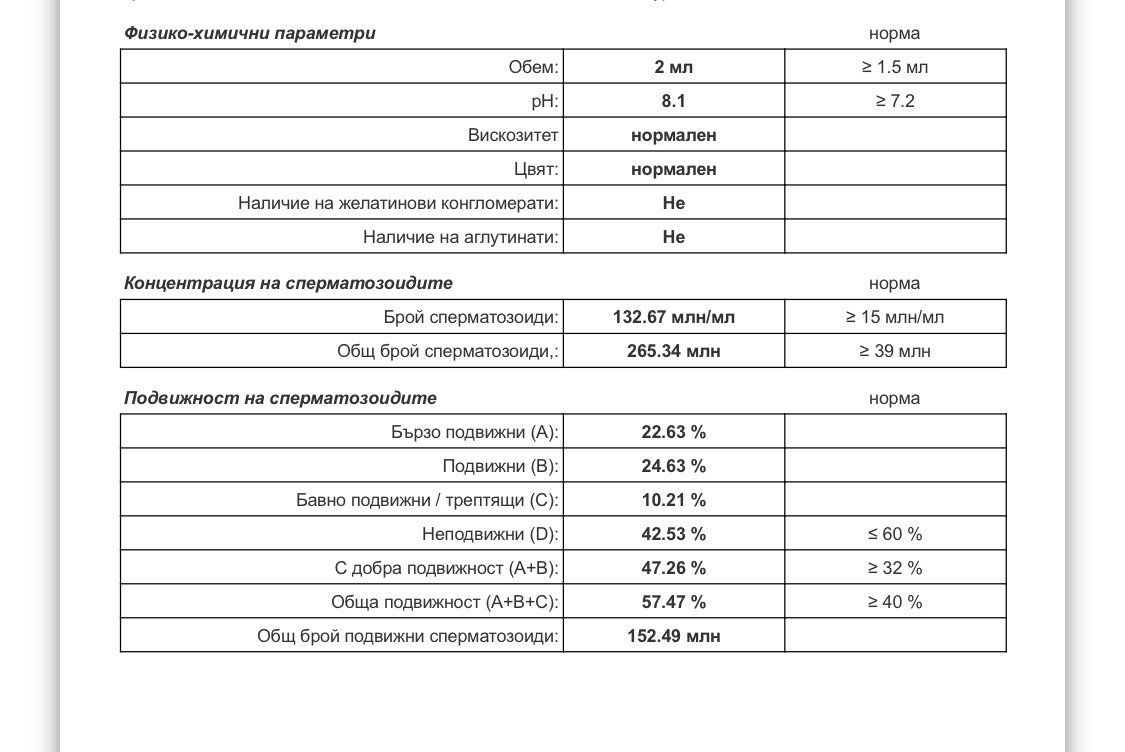 Пиша ви по повод резултатите от спермограмата на моят мъж .