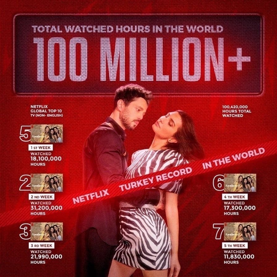 On it’s  5th Week Another Self is ranked 7 on Top 10 Non English TV series with 11,830,000 hours views 💥 Now the total is 100,420,000 Hours views for 31 days. Happy 100M+ Hours Views 🔥 I’m so happy and proud of my Queen 😭😭#TubaBüyüküstün #ZeytinAğacı #AnotherSelf