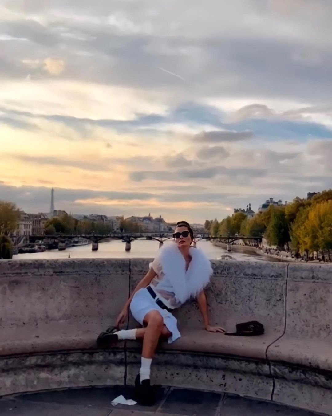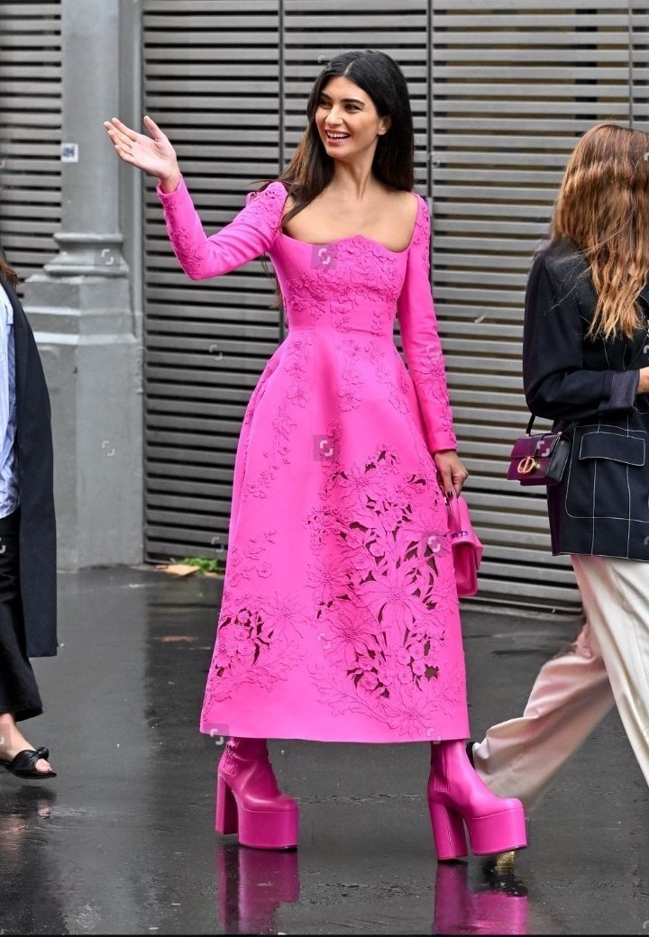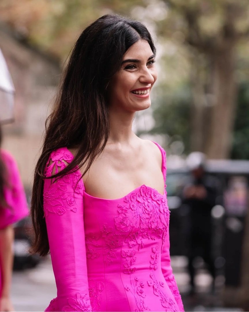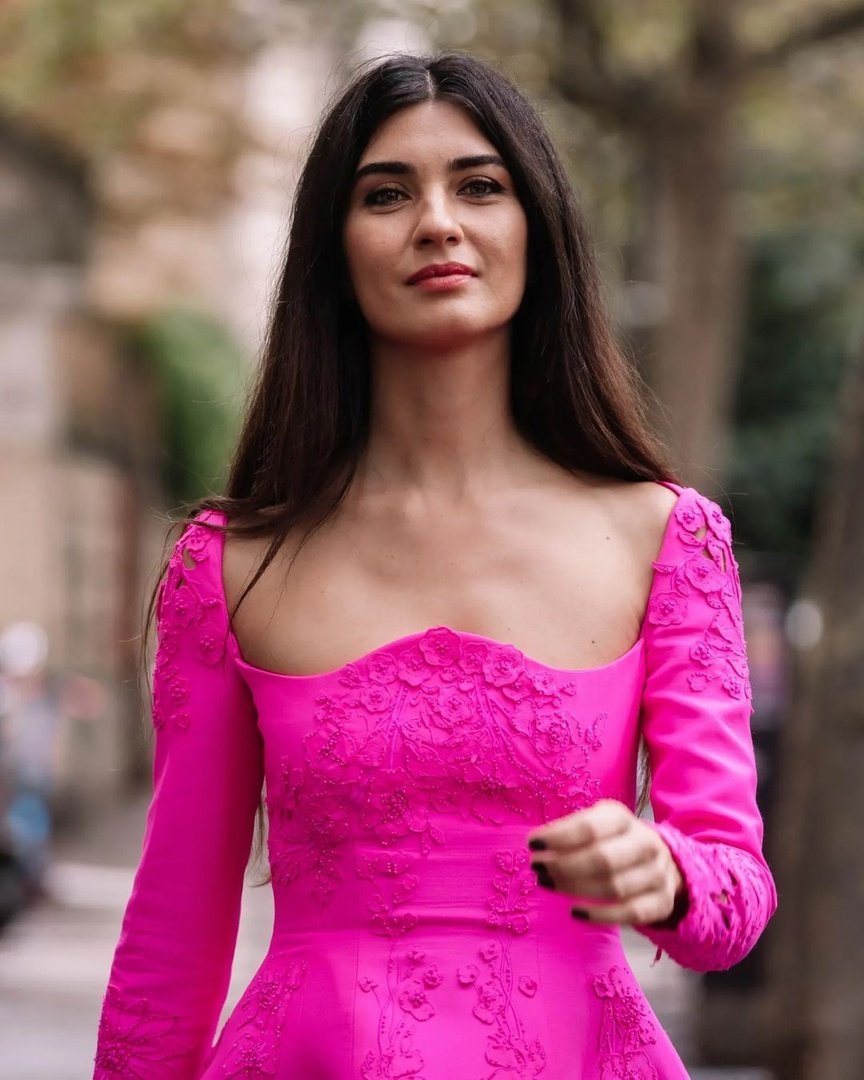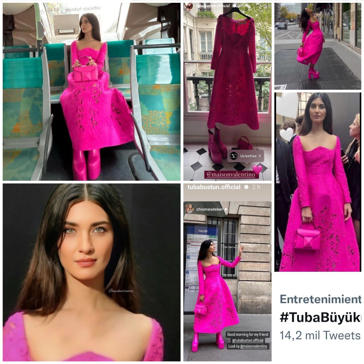 Очарователната Tuba Büyüküstün преди шоуто на @MaisonValentino пролет 2023 в Париж. Снимка: @alena.milan.photo x @f2max